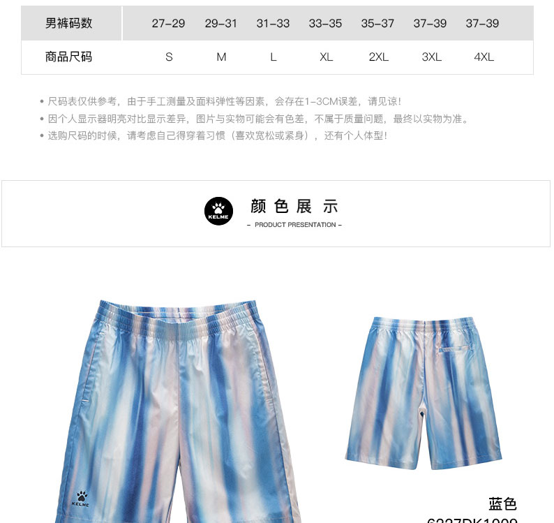 KELME卡尔美扎染梭织五分裤男2022夏季新款海边度假宽松休闲短裤6227DK1009