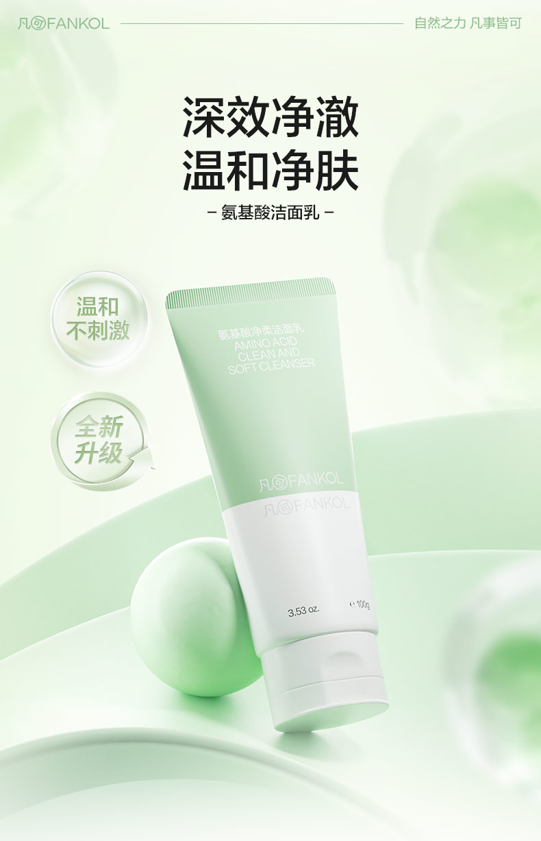 凡可氨基酸净柔洁面乳洗面奶深层清洁毛孔温和不刺激男女泡沫绵密