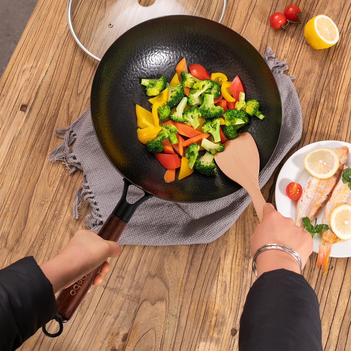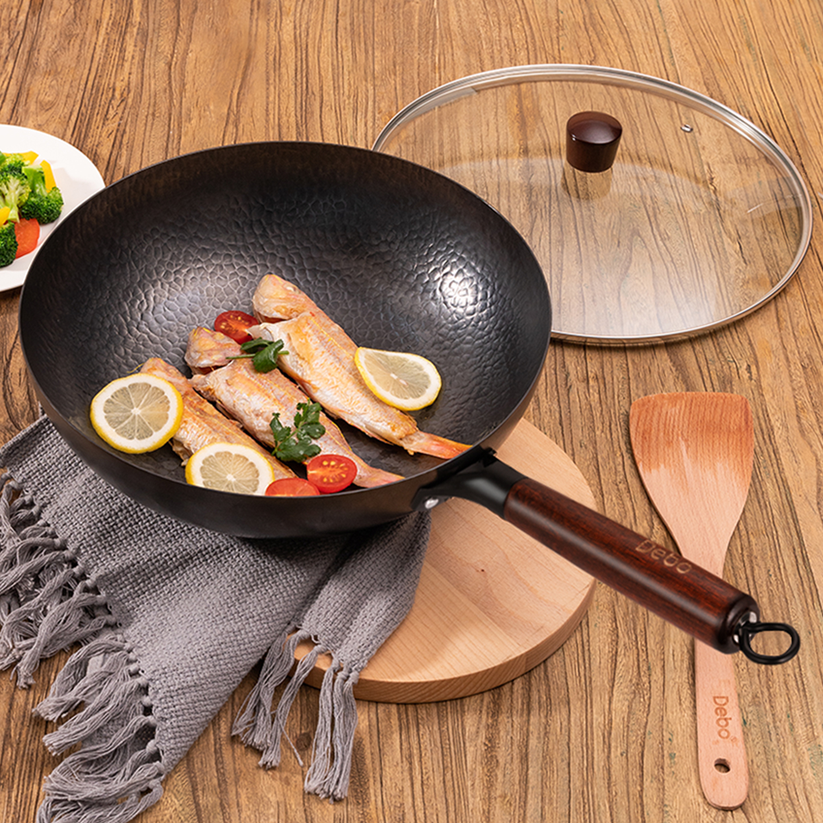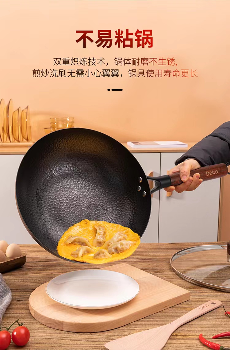尼尔森梅里萨 无涂层精铁纹理炒锅DEP-DSC321H2件套 |德铂Debo