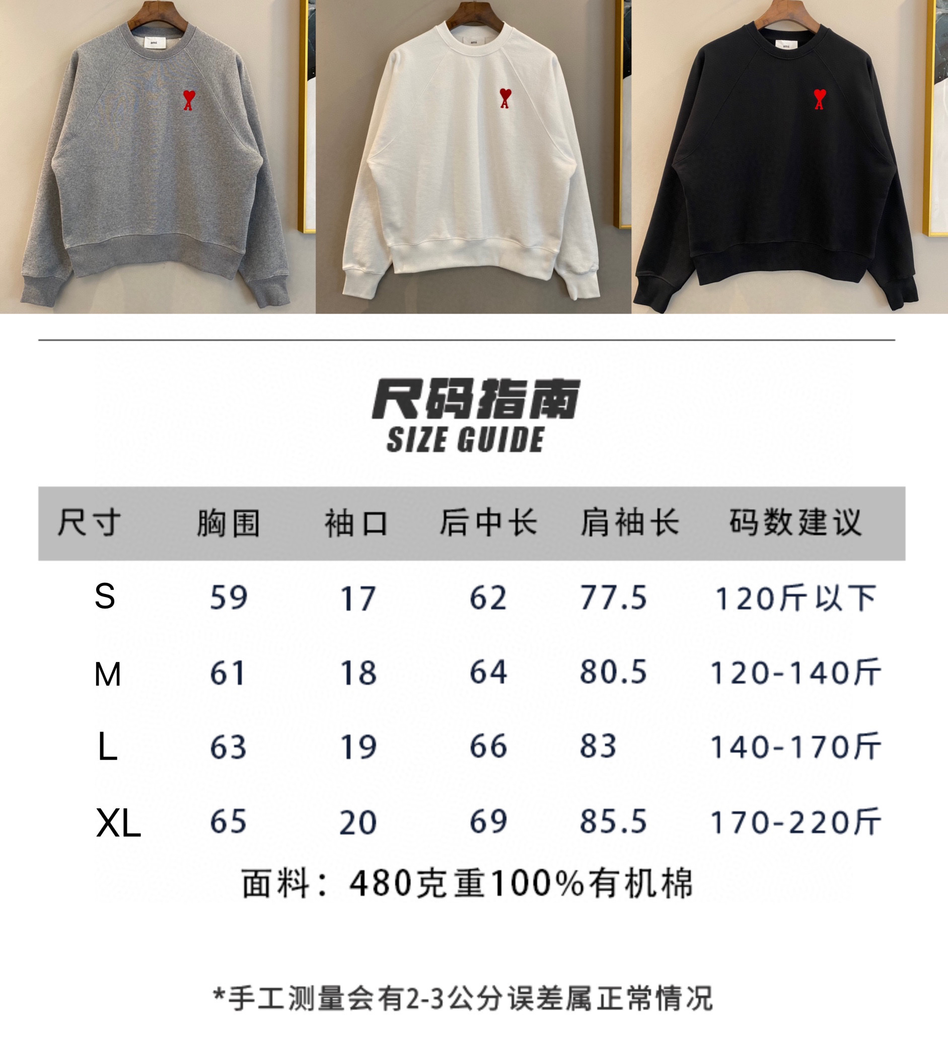Ami de Coeur23春夏爱心刺绣圆领插肩卫衣