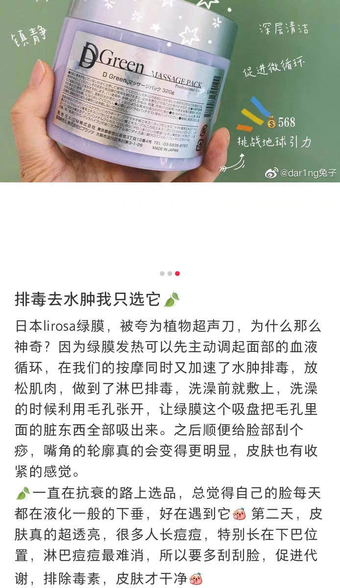 【品名】日本大碗自发热清洁绿膜涂抹面膜膜按摩膏320g无盒