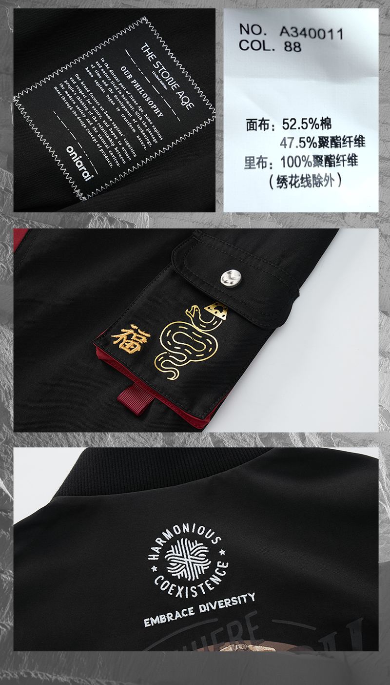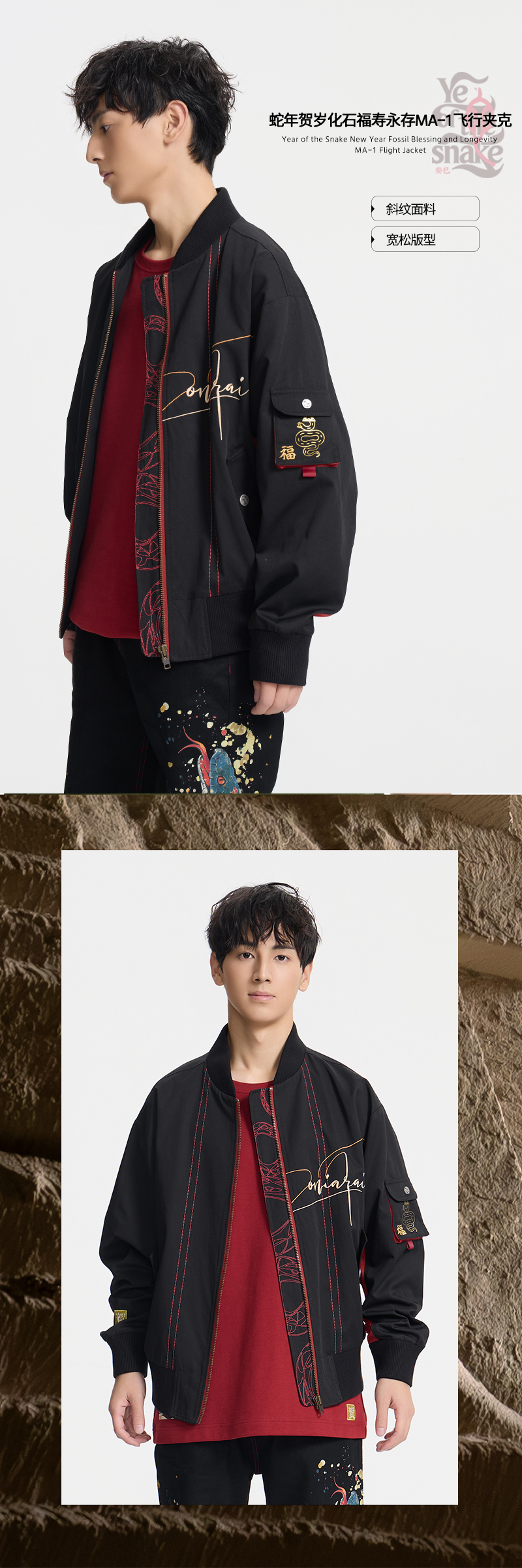 ONIARAI/鬼洗 蛇年贺岁化石福寿永存MA-1飞行夹克 A340011