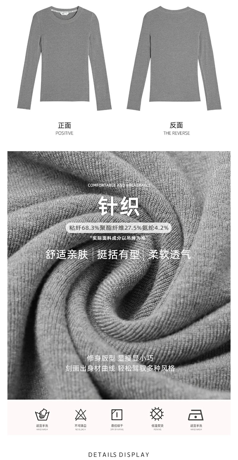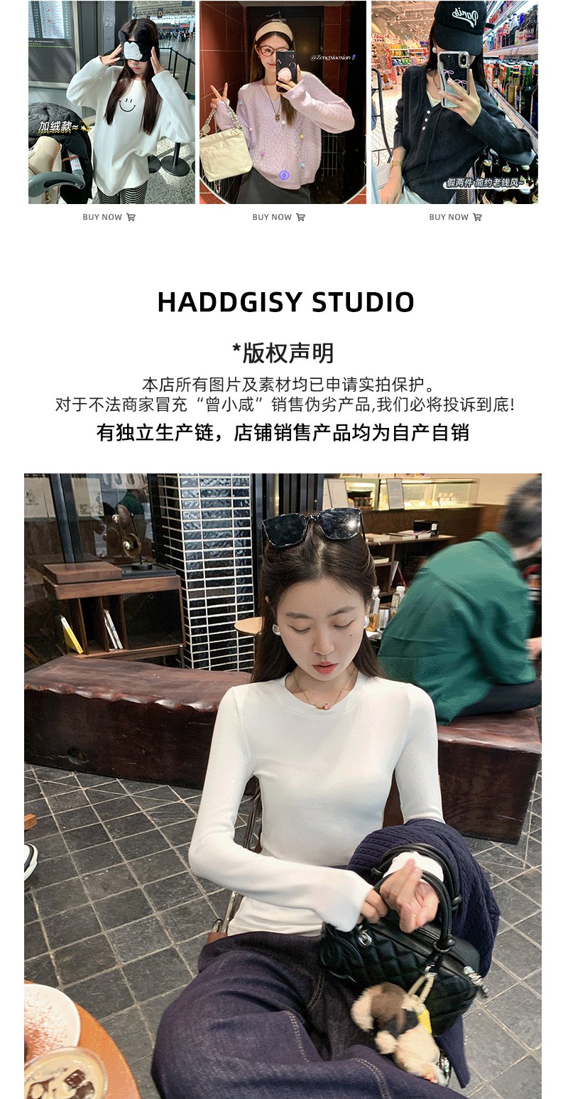 <曾小咸推荐>基础百搭3色圆领修身T恤打底衫