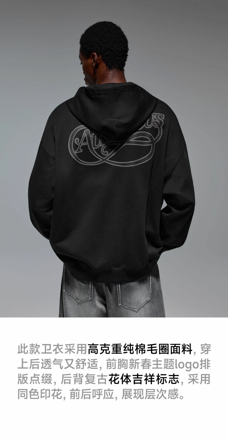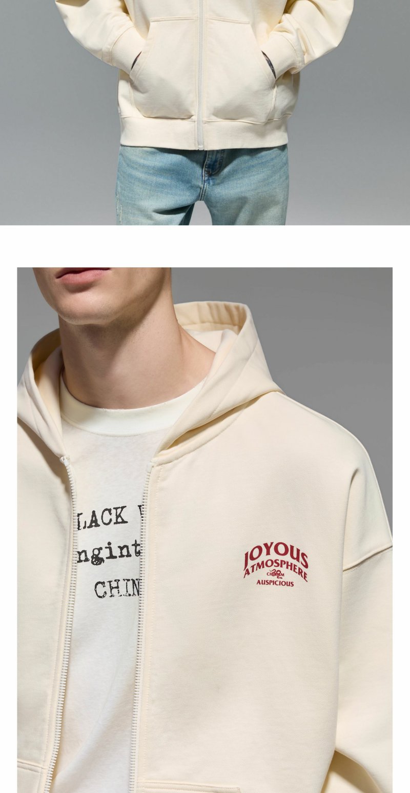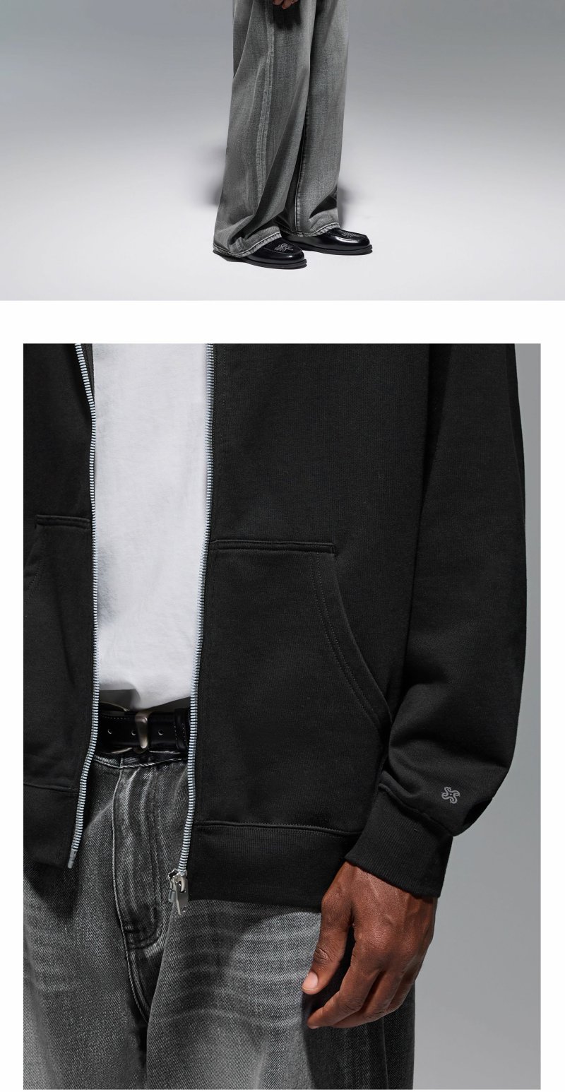 CHINISM赤尘 重磅连帽开衫卫衣男秋季新款美式男士印花拉链帽衫