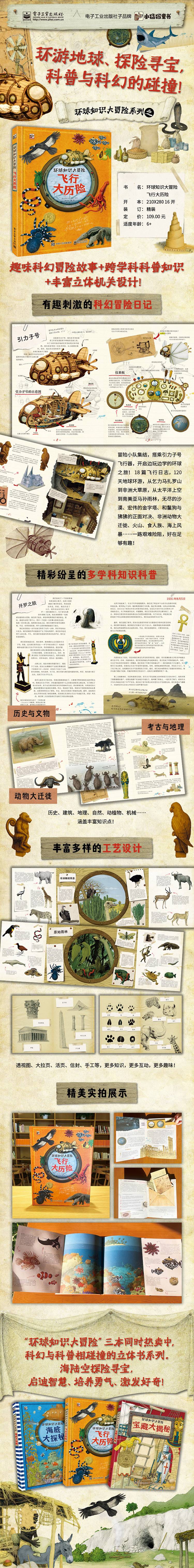 三个孩子在祖父的工作室里发现一个名叫"引力子号”的飞行器,当他们不小心碰到机关后,引力子号飞行器慢慢上升,带着他们开始了环球之旅…… 在途中,他们参观了世界上*有趣的地方,看到了许多独具特色的动植物:从乞力马扎罗山到非洲大草原,从太平洋上空到南美亚马逊雨林……一路上历经险阻:看到了无尽的沙漠,参观了宏伟的金字塔,与鬣狗和狒狒面对面,参与了非洲动物大迁徙,与喷发的火山"擦肩而过”,从食人族部落逃脱,经受了无情的海上风暴……书里有丰富的设计工艺,小折页等,让阅读和探险巧妙融合。