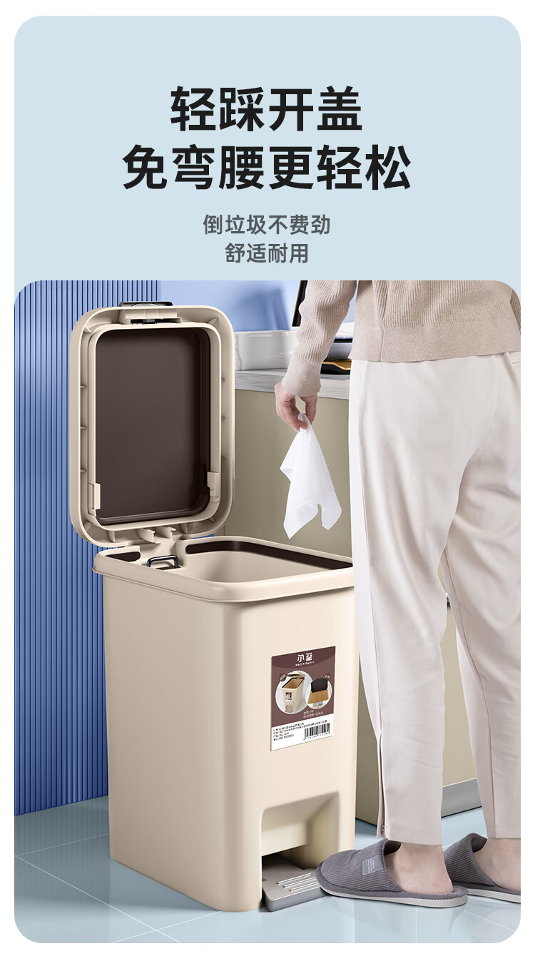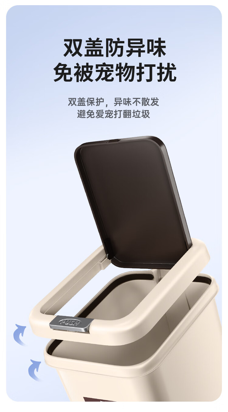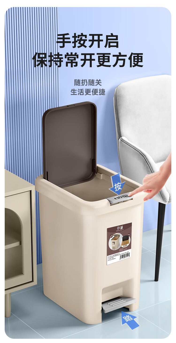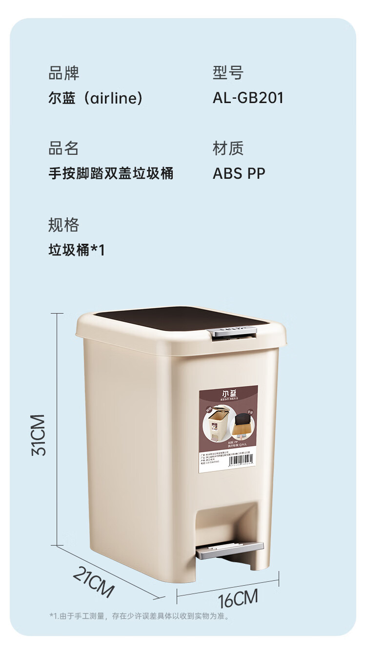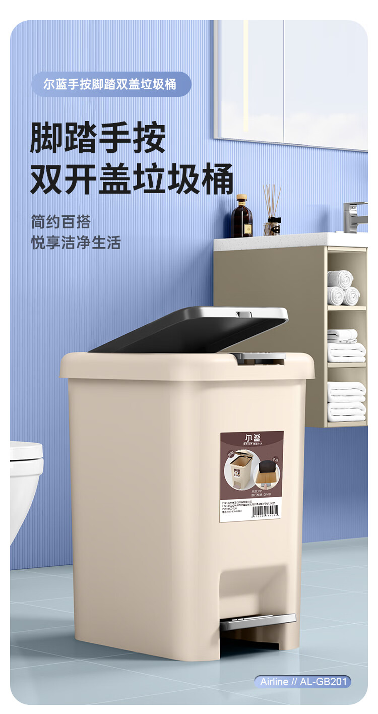 尔蓝双开盖垃圾桶手按脚踏办公垃圾桶 家用垃圾纸篓AL-GB201 5186859