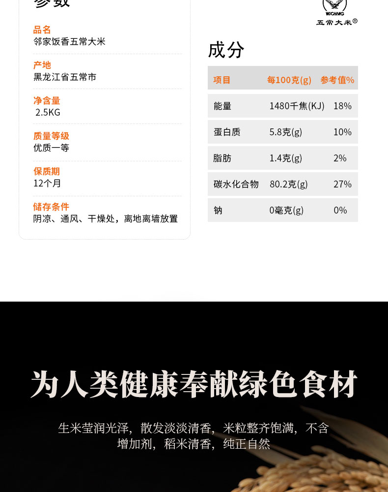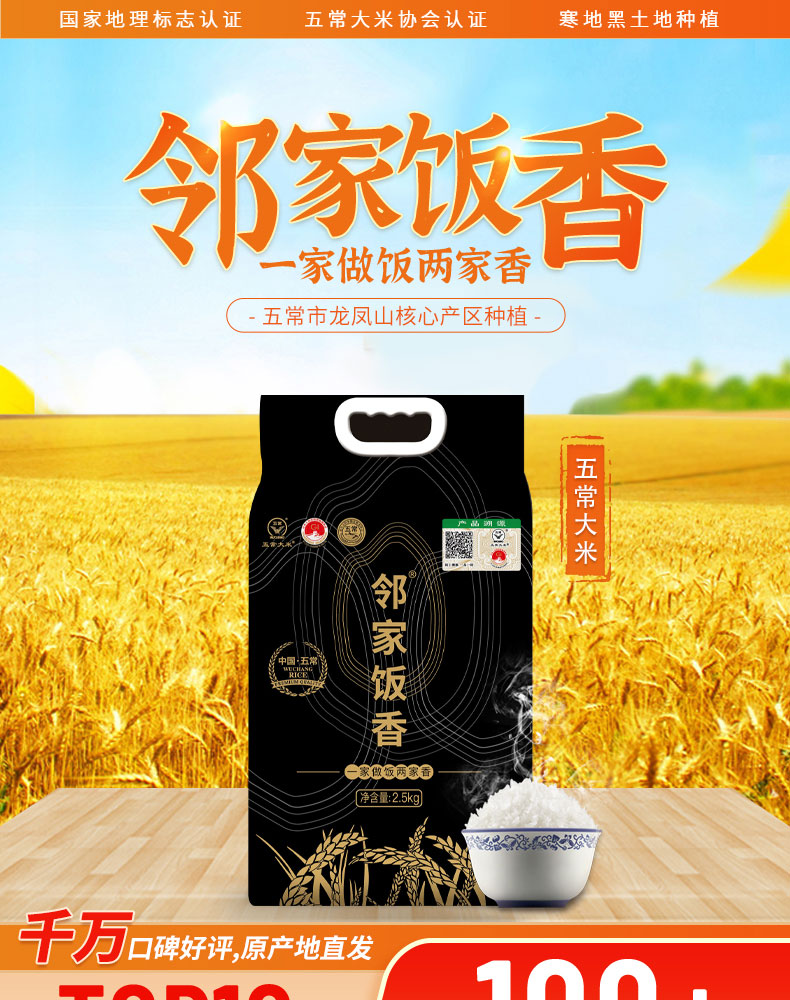 邻家饭香 核心产区五常大米 2.5kg每袋 真空双层包装LJFX78