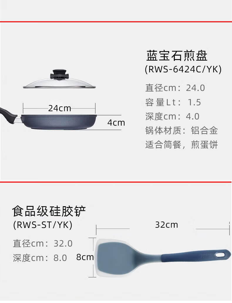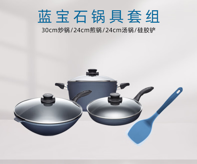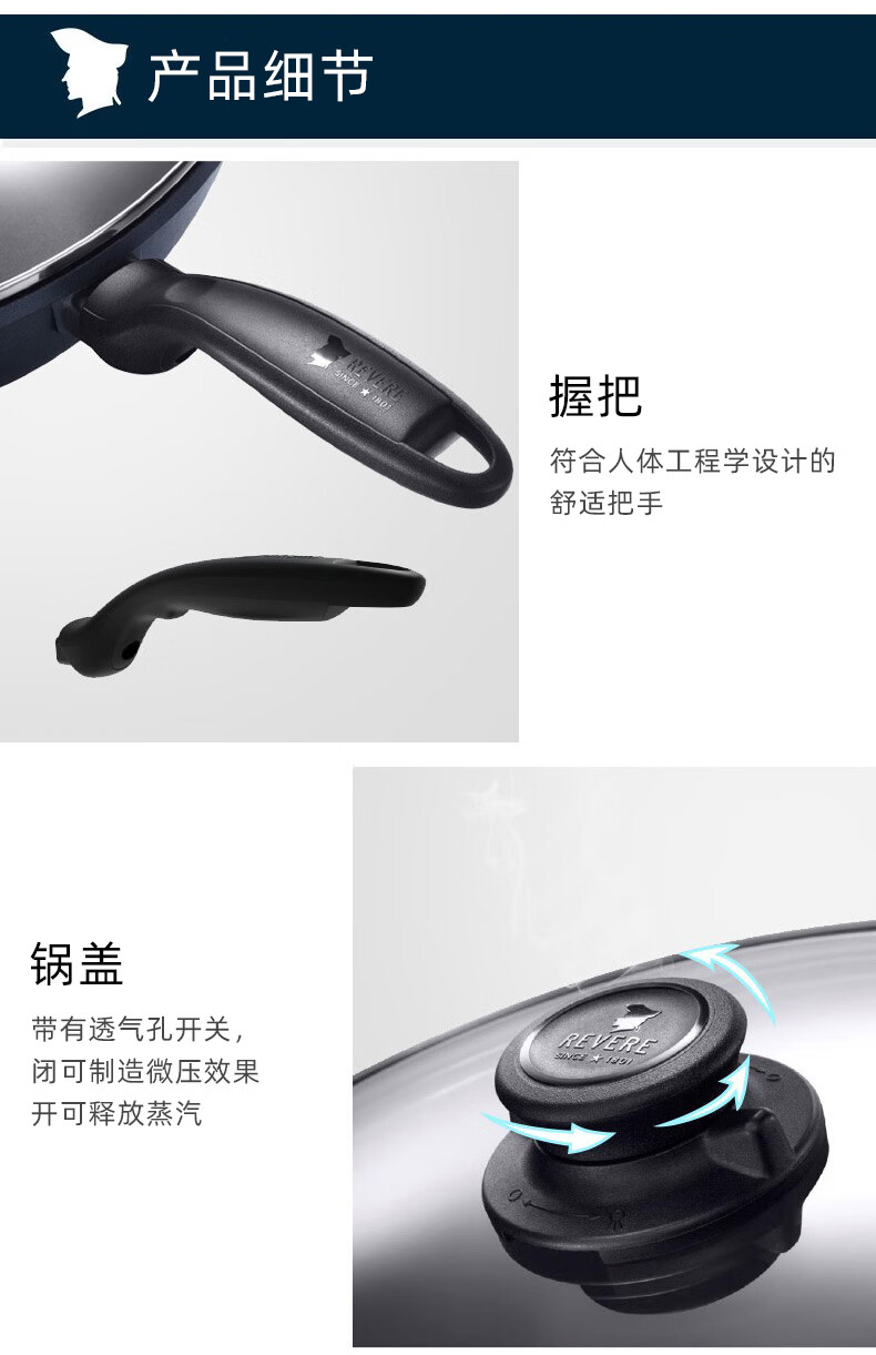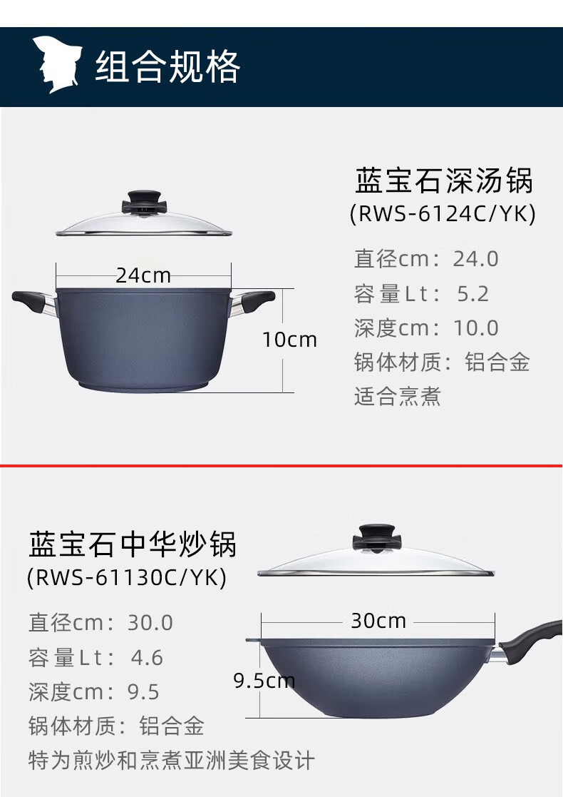 【小家电】Revere 蓝宝石带盖不粘锅中华汤锅套组汤锅炒锅煎盘RWS-WKFPSUP/HC HF