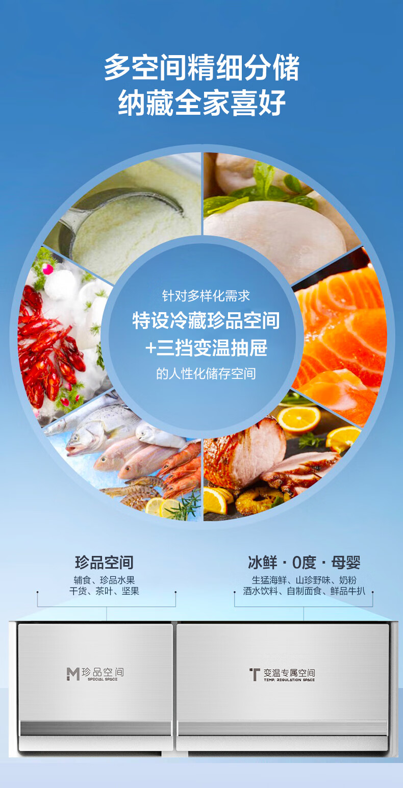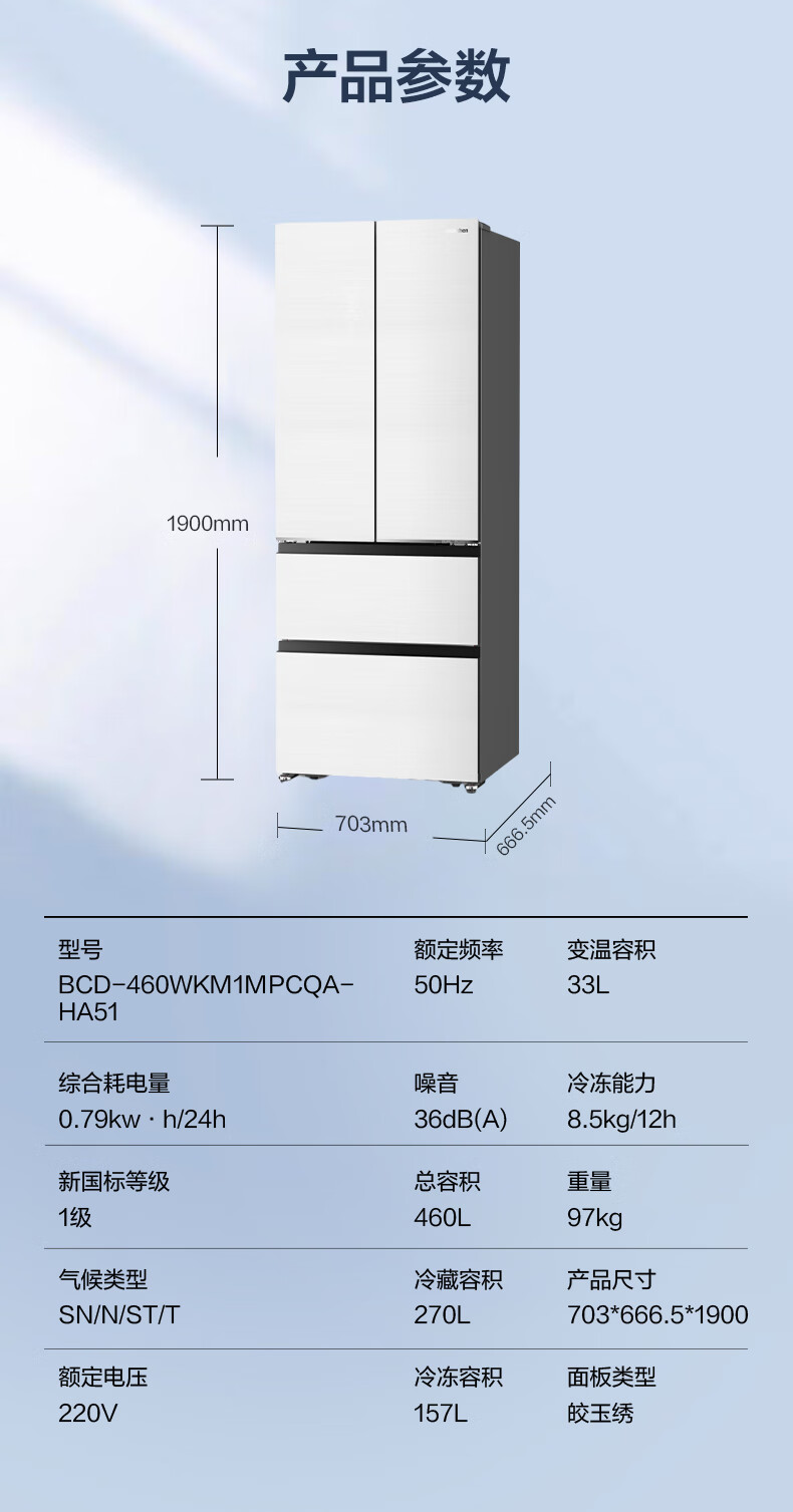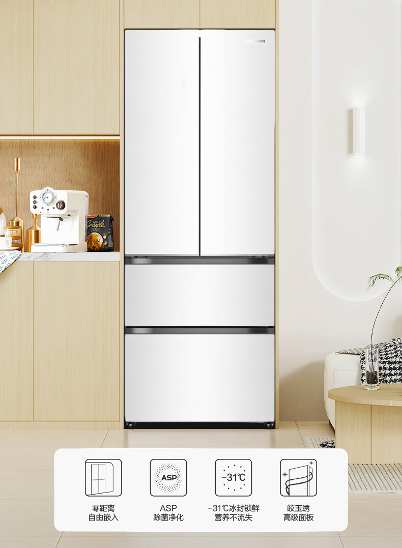 容声460升法式多门四门风冷无霜双循环一级变频家用母婴净味节能可嵌入冰箱 BCD-460WKM1MPCQA皎玉绣