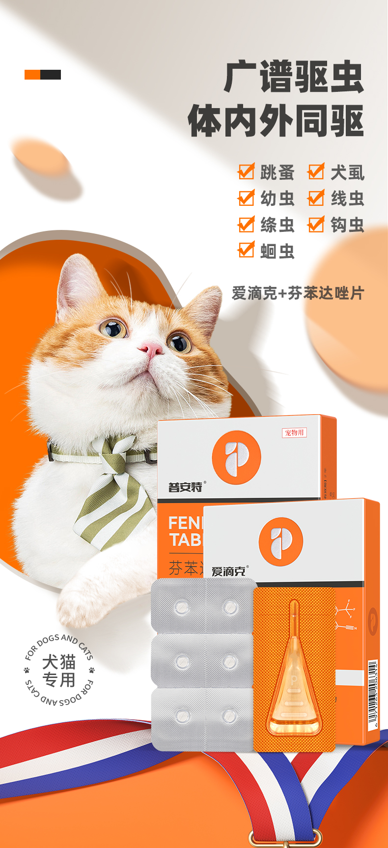 【49元任选3件】普安特宠物驱虫药猫咪狗狗爱滴克非泼罗尼1支+芬苯达唑片(1盒)(该链接限购2件)