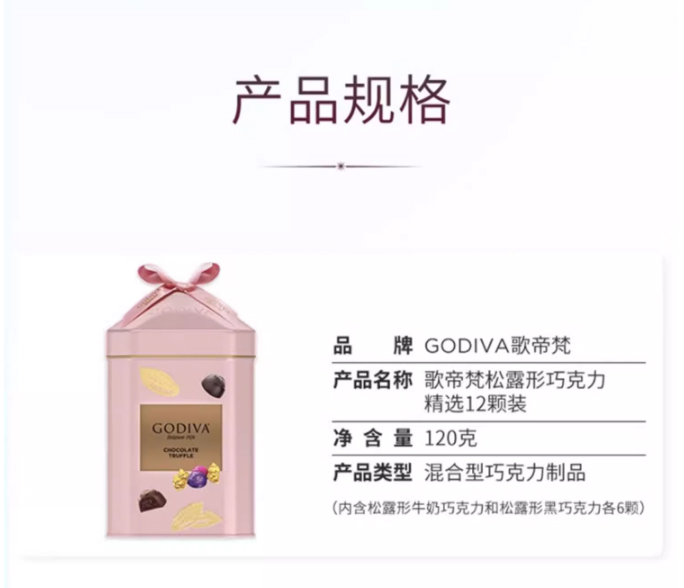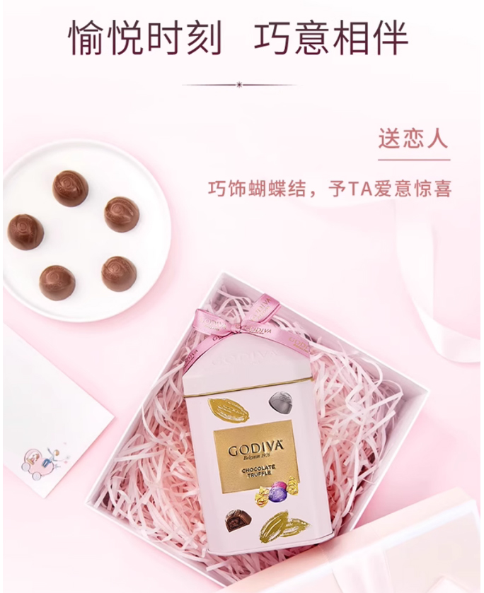 【商品名称】GODIVA歌帝梵松露形巧克力礼盒精选12颗 铁盒粉色