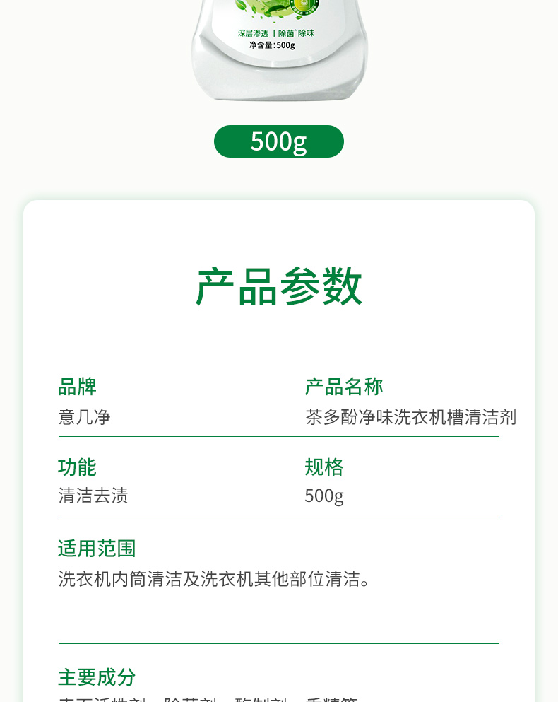【自营】 意几净茶多酚净味洗衣机槽清洁剂500g