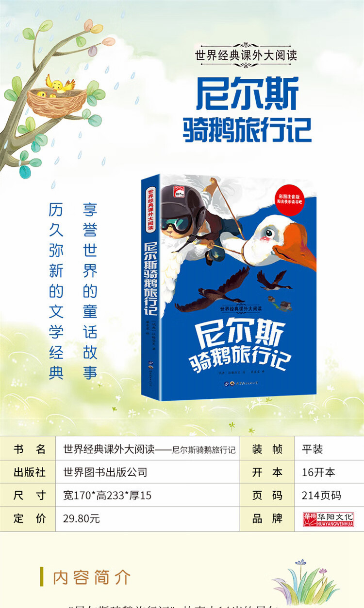 世界经典课外大阅读系列 彩图注音版 尼尔斯骑鹅旅行记