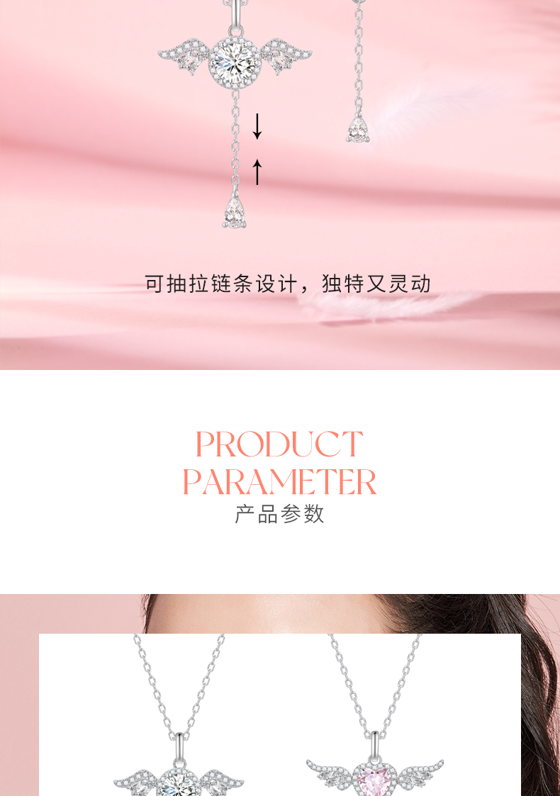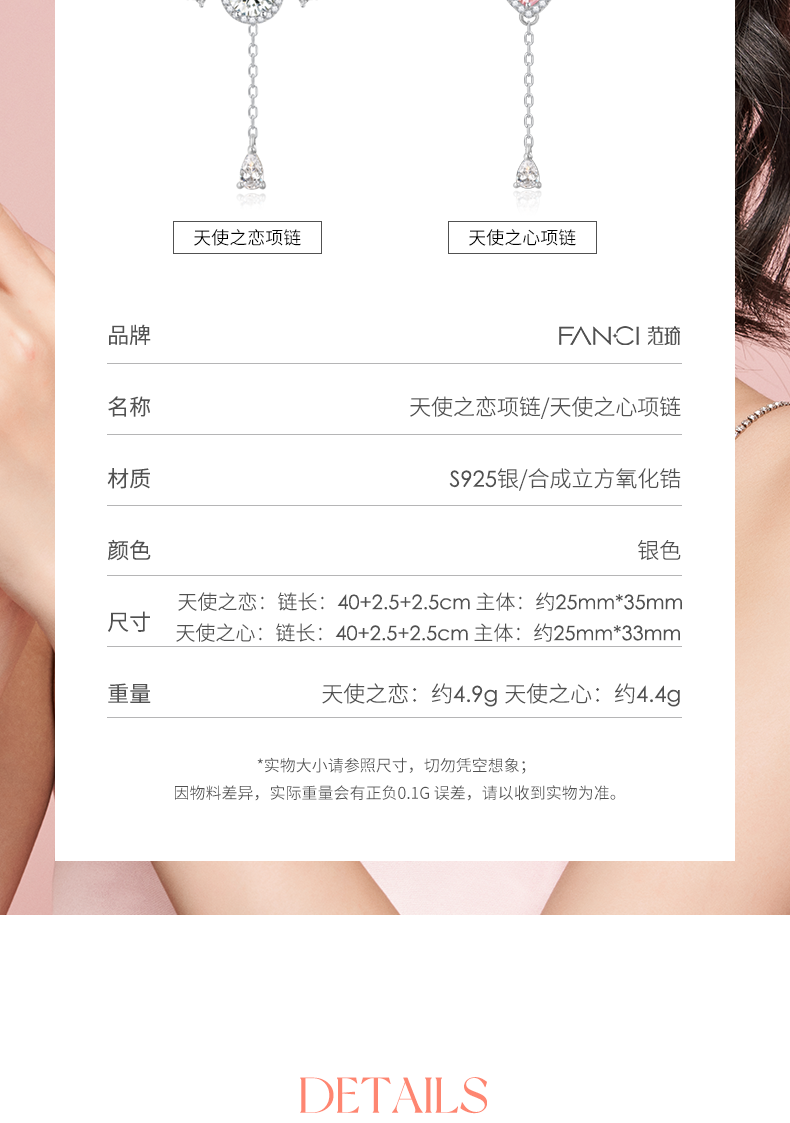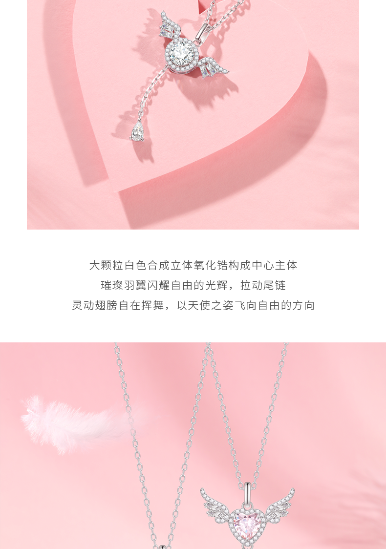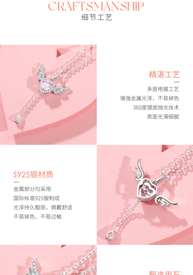 【明星同款】FANCI范琦 天使之心小翅膀项链女银饰轻奢小众生日礼物纪念日送女友