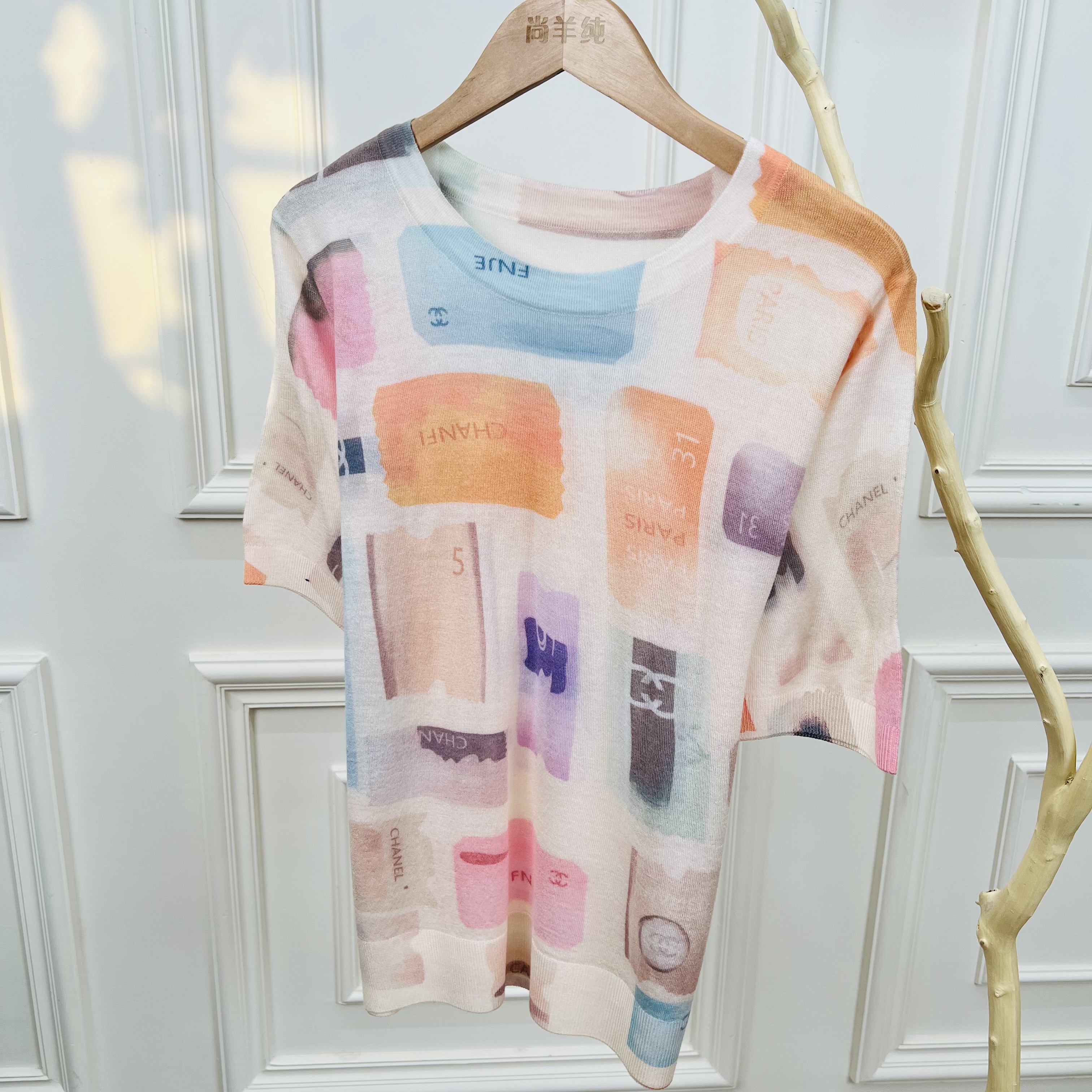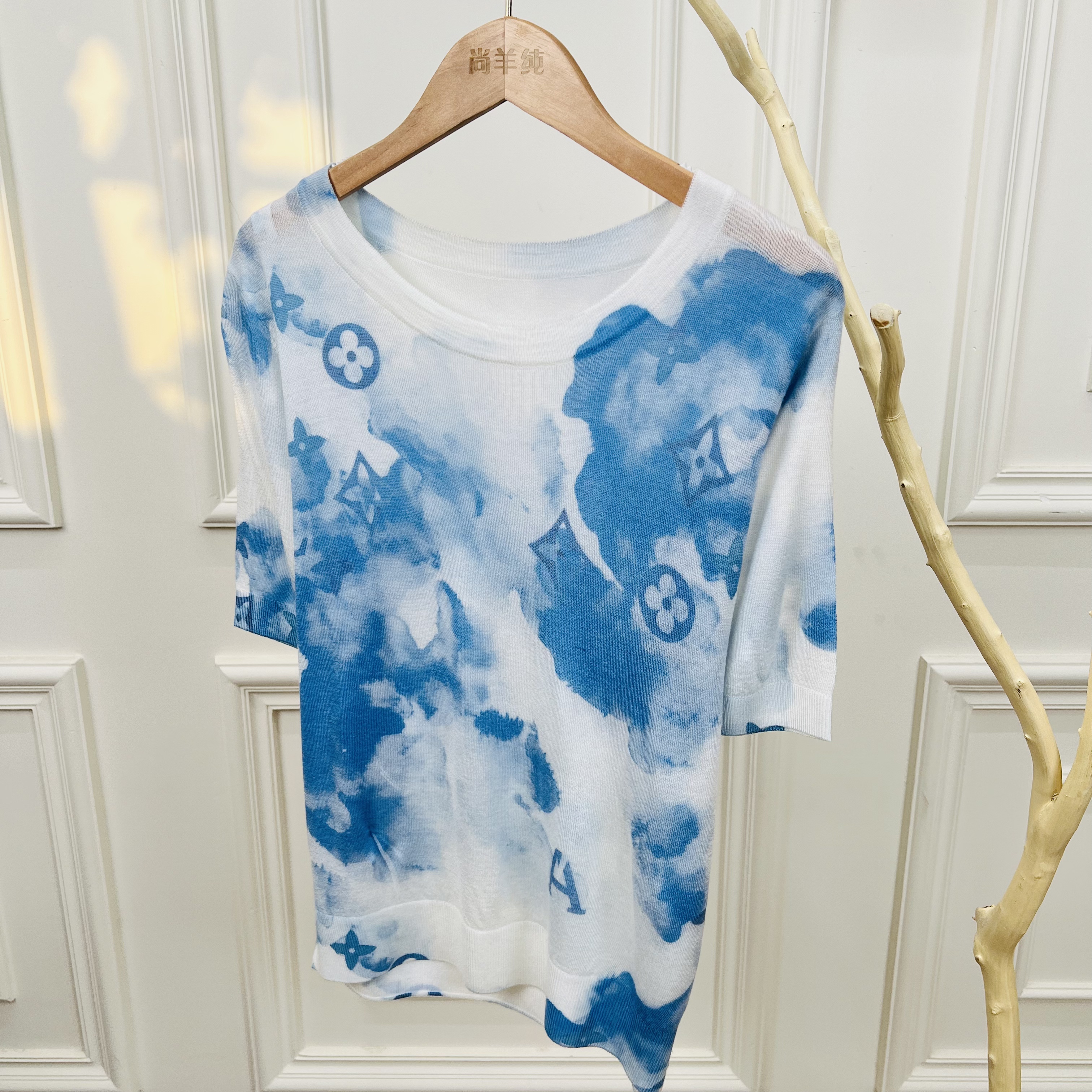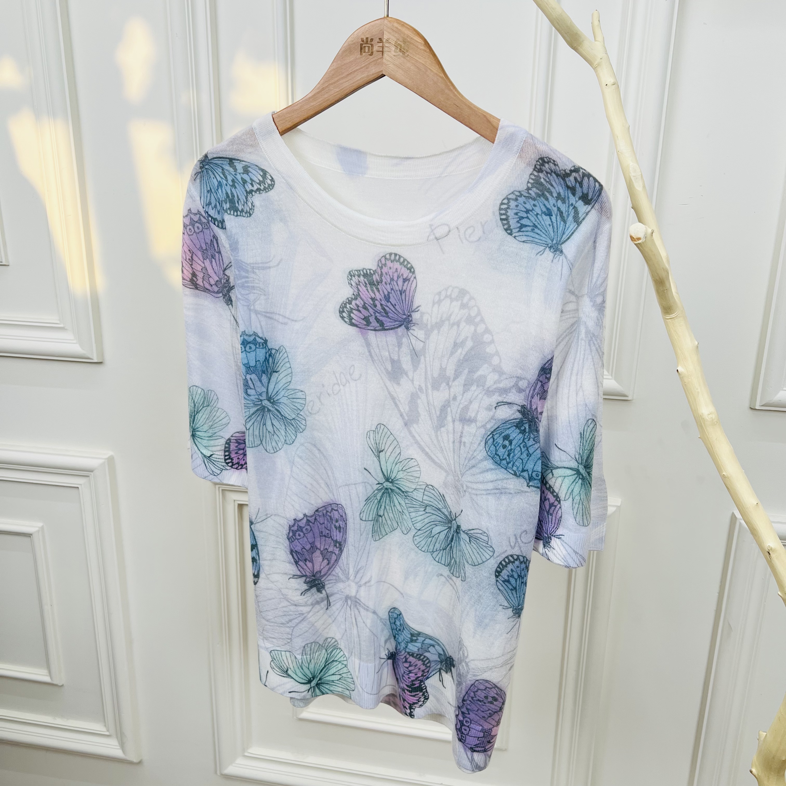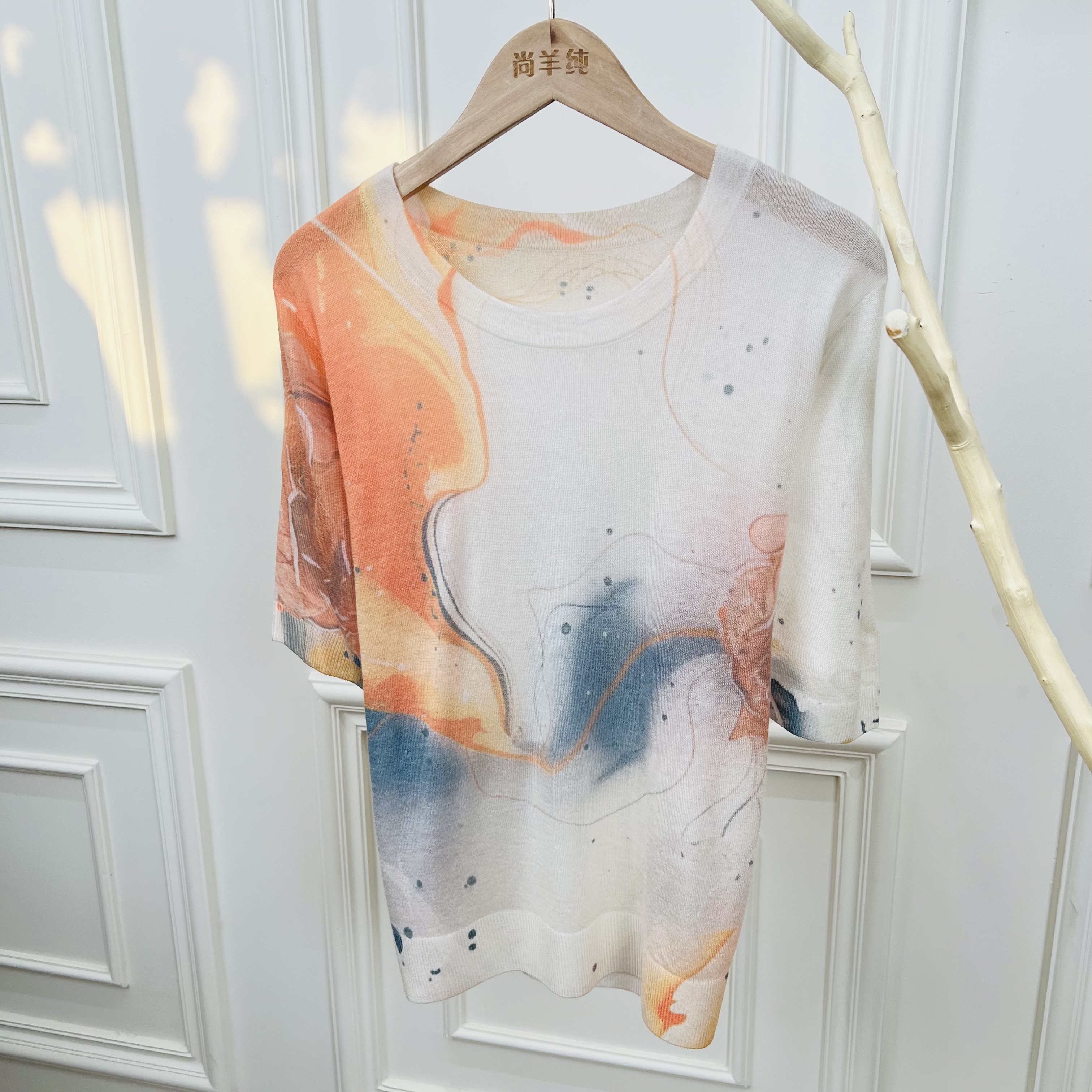 清云雾染~ 羊 毛圆领宽松显瘦提花针织套头短袖