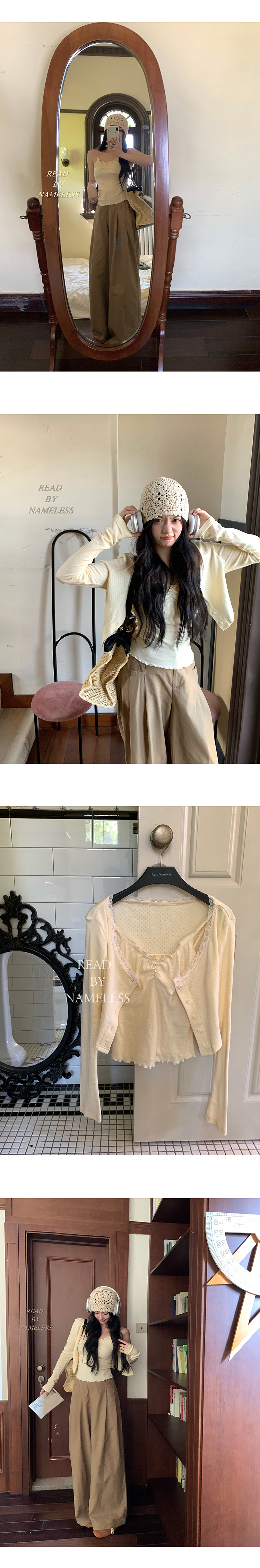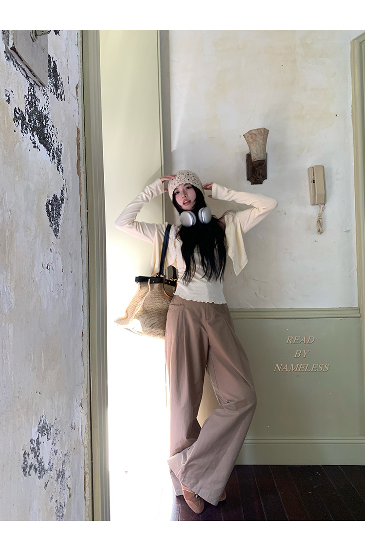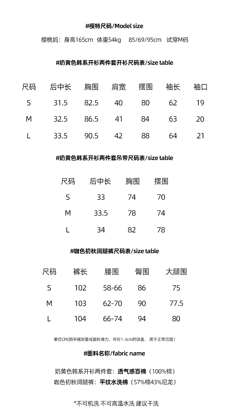Read Nameless /奶黄色韩系开衫两件套+咖色初秋阔腿裤
