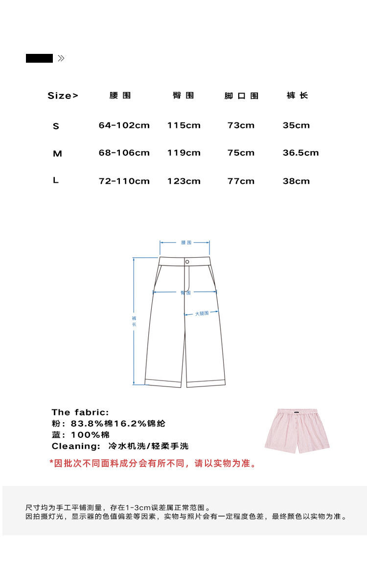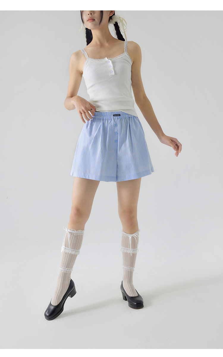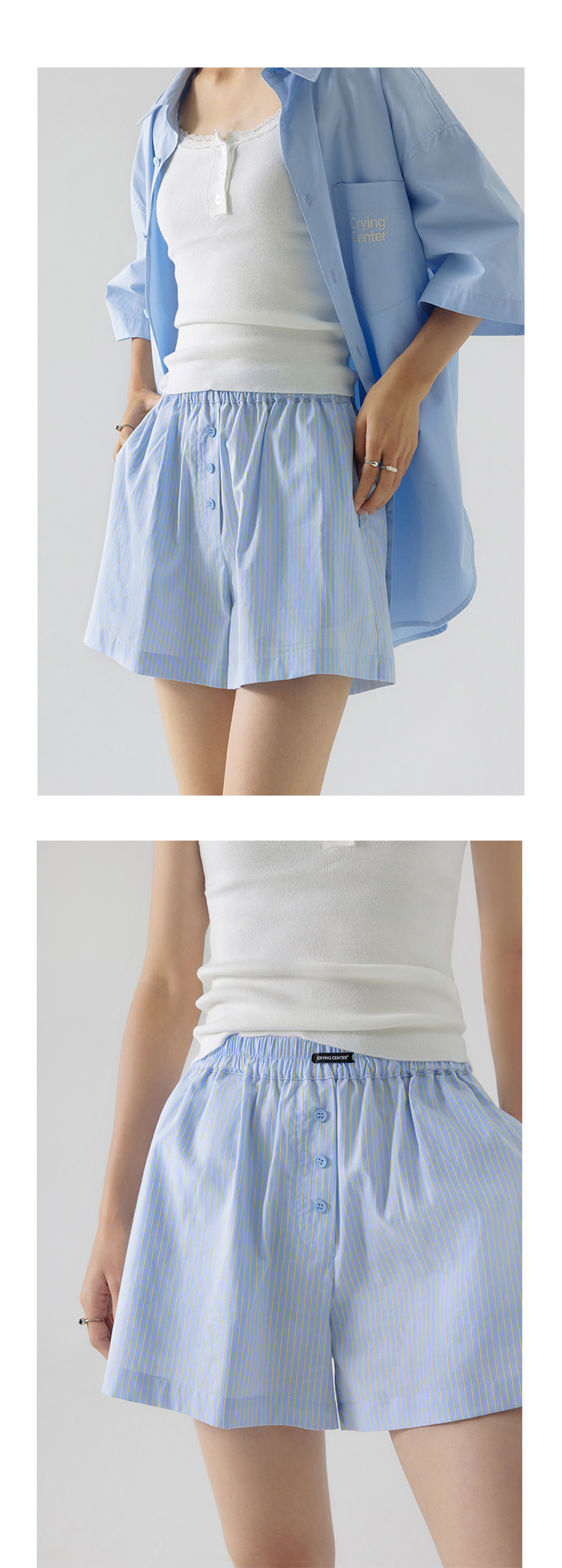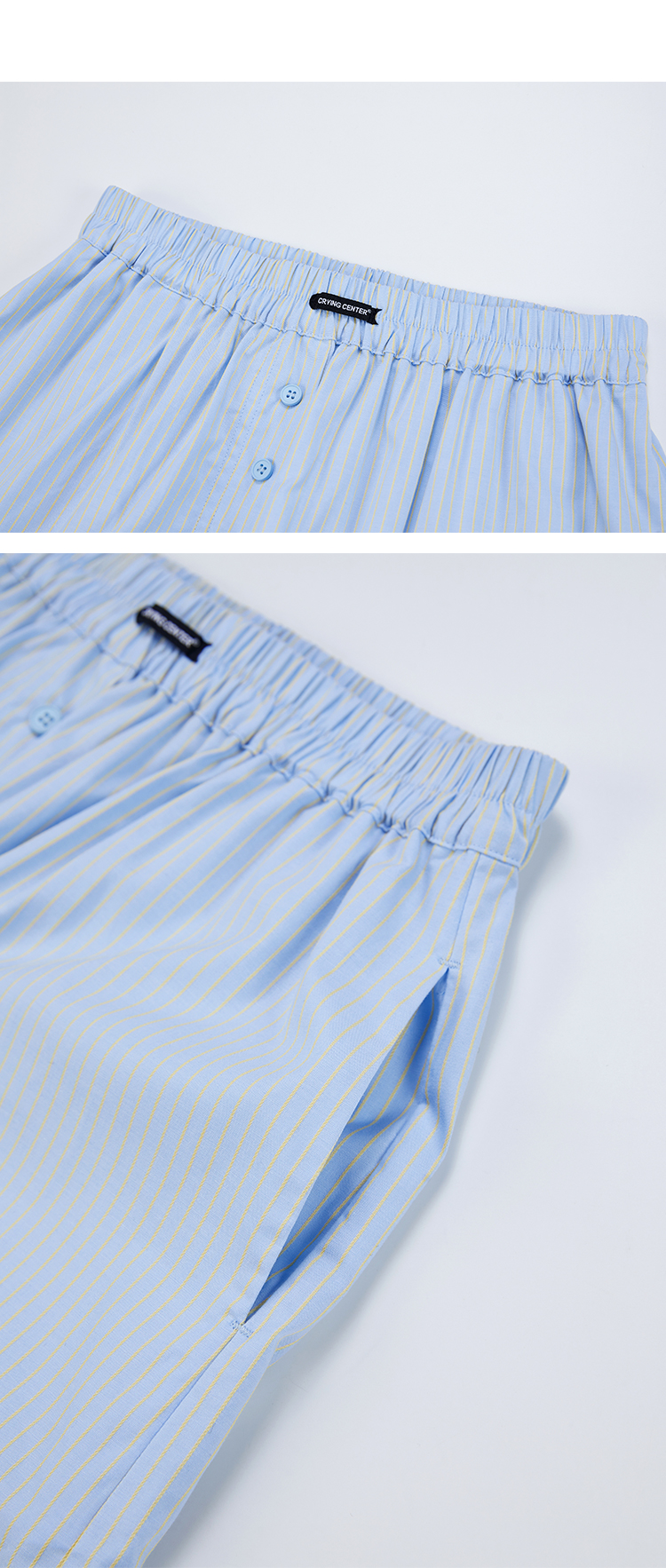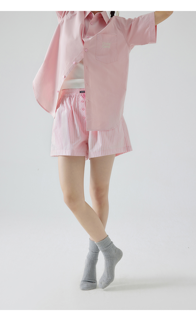 CryingCenter 樱花粉海盐蓝条纹阿罗裤橡筋腰休闲短裤 哭喊中心