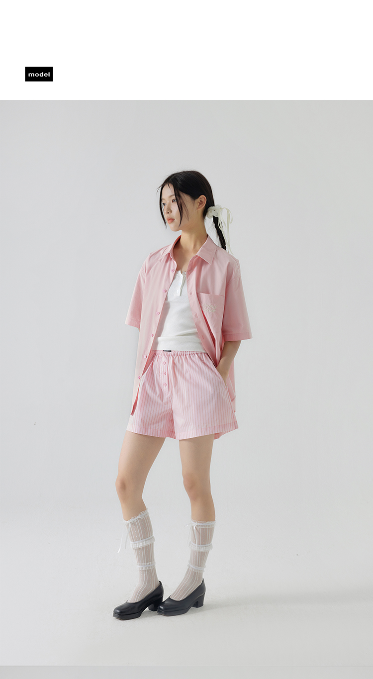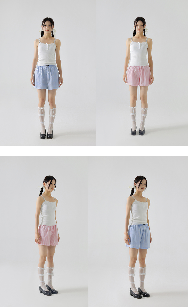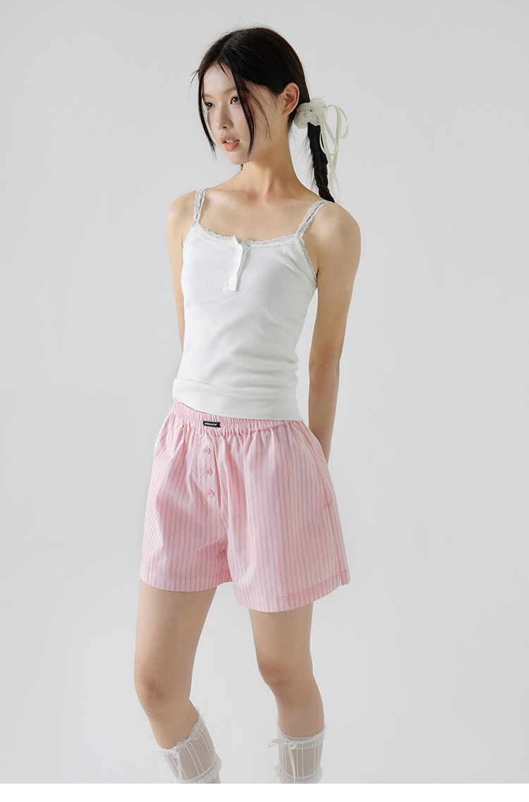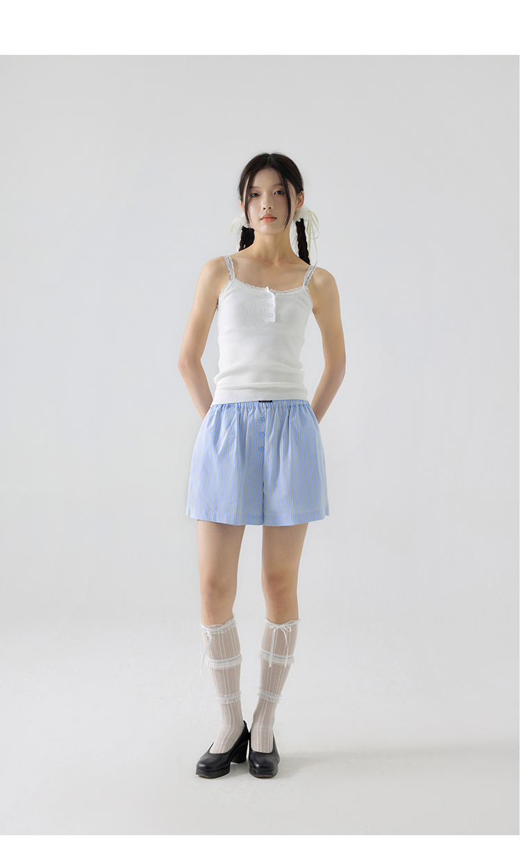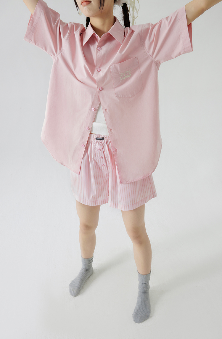 CryingCenter 樱花粉海盐蓝条纹阿罗裤橡筋腰休闲短裤 哭喊中心