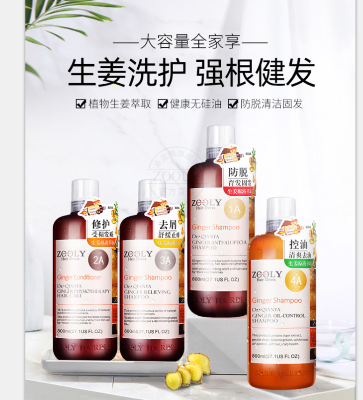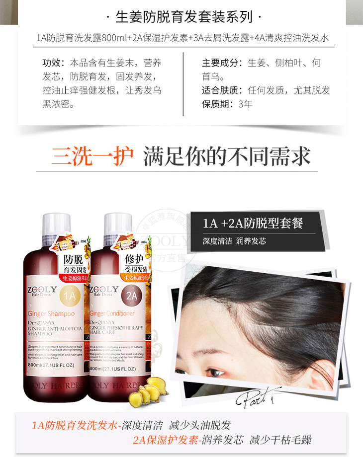 优选丨【洗护大套装+育发液】卓蓝雅生姜防脱洗护800ml*2+育发液50ml 防脱育发 家庭大套装