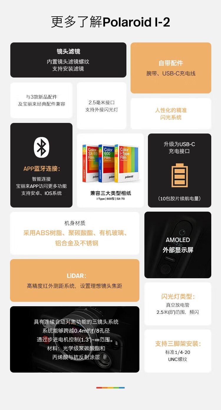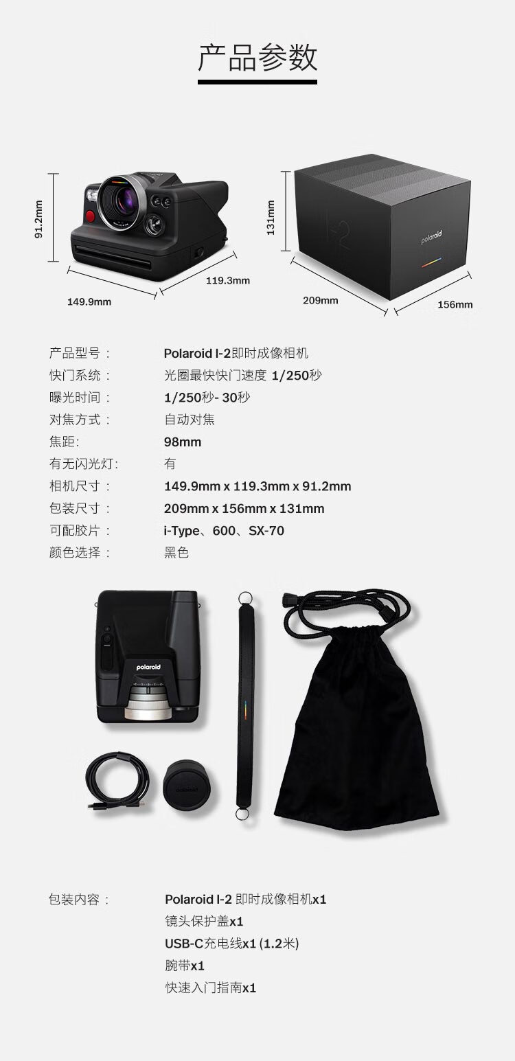 宝丽来(Polaroid)I-2拍立得户外相机锐利镜头专业摄影可手动控制 【官方标配 无相纸】