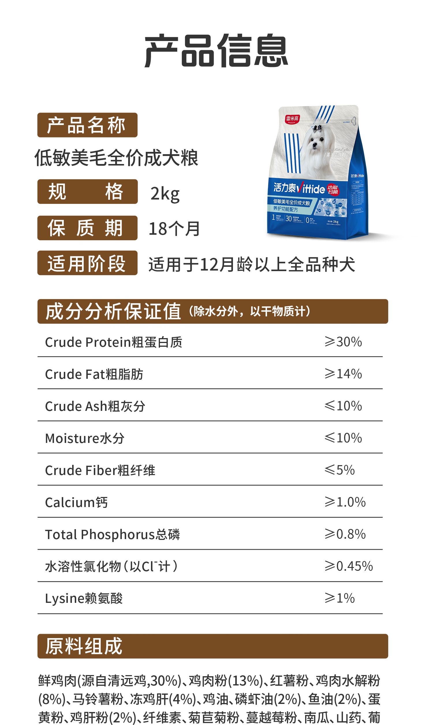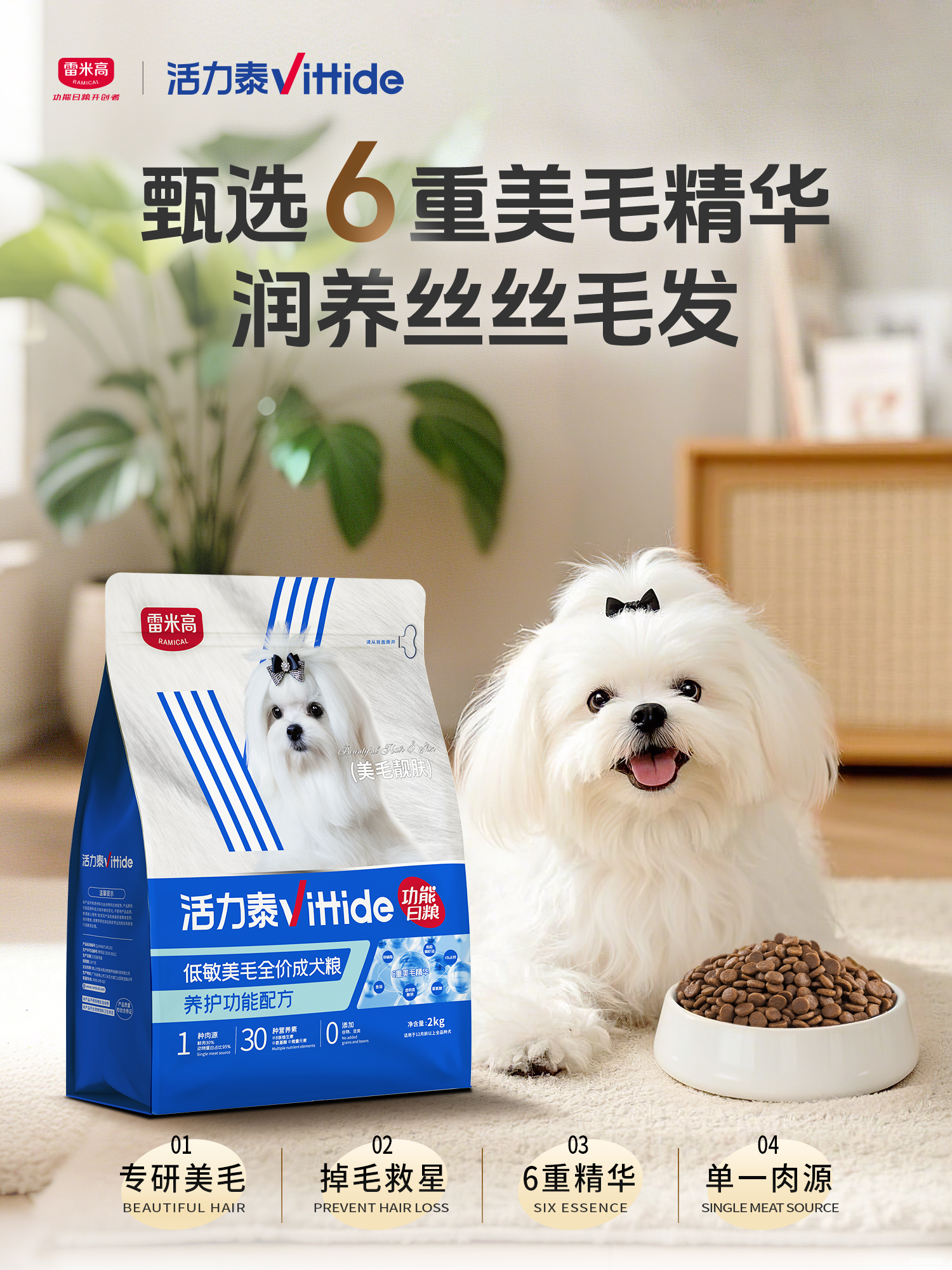 活力泰功能日粮低敏美毛狗粮比熊柯基博美柴犬通用型犬粮2kg