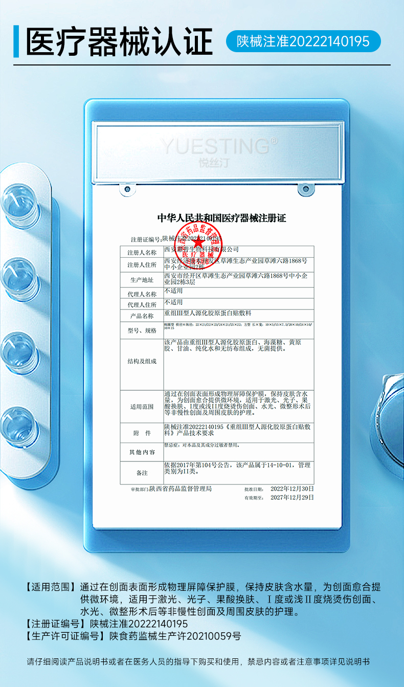 悦丝汀 重组III型人源化胶原蛋白贴敷料创面术后医用无菌非面膜