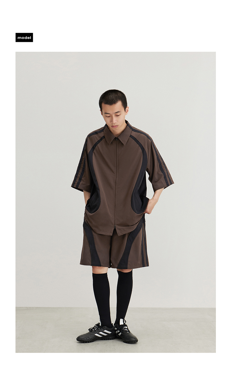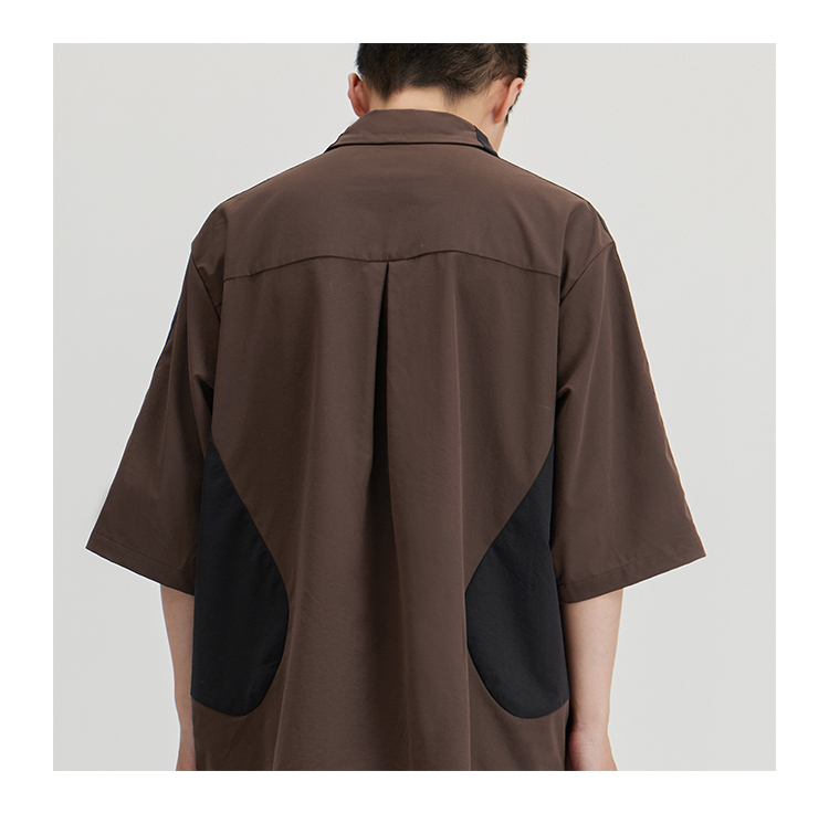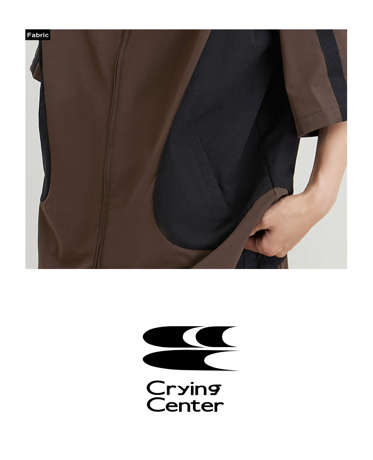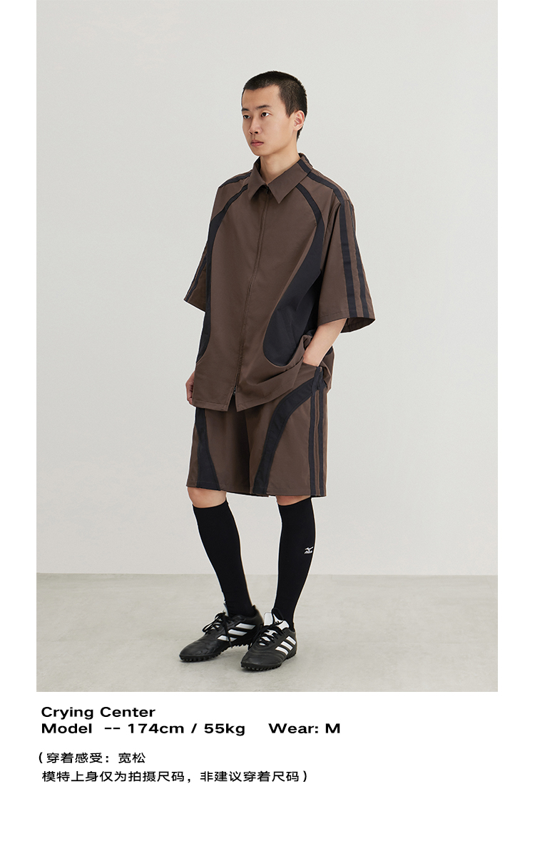 CryingCenter 棕黑色拼接休闲运动短袖衬衣衬衫 哭喊中心