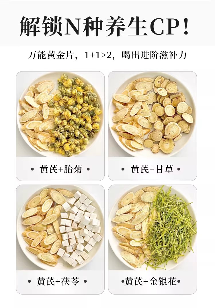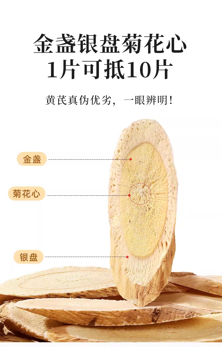 在菌屋 主根大片黄芪250g/罐 15mm以上大片 菊花芯清晰可见