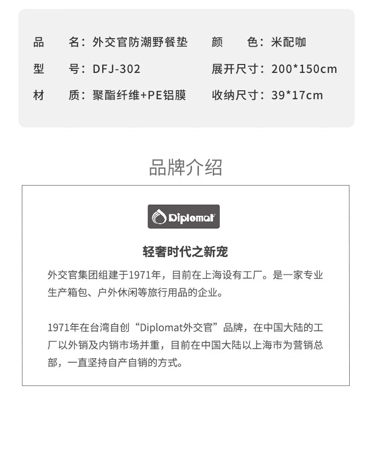 外交官防潮野餐垫-米配咖DFJ-302