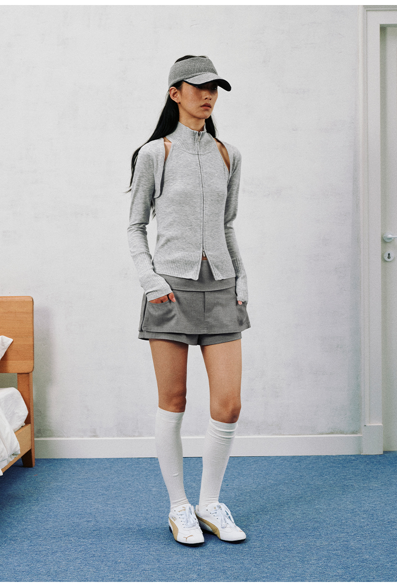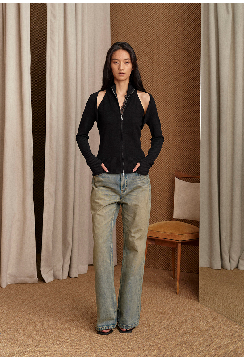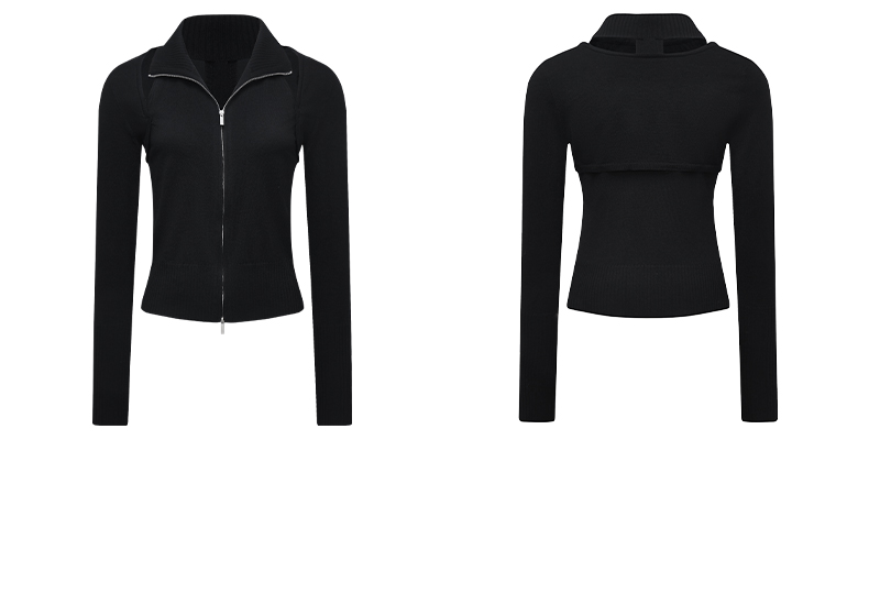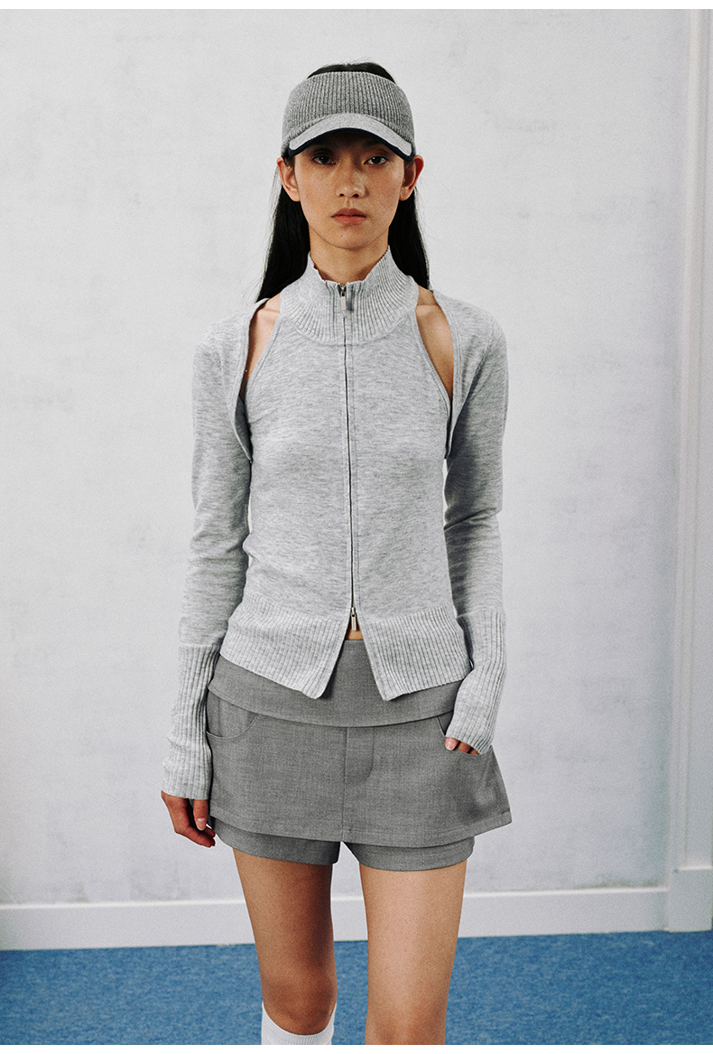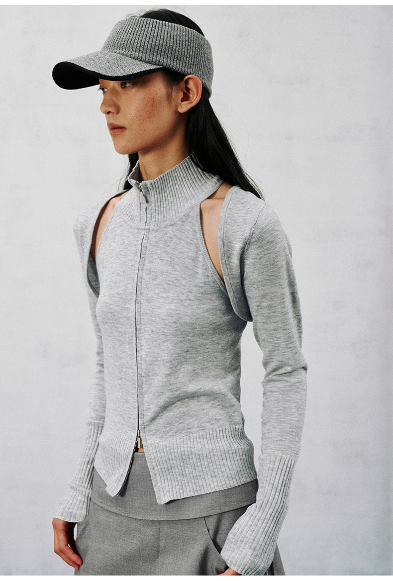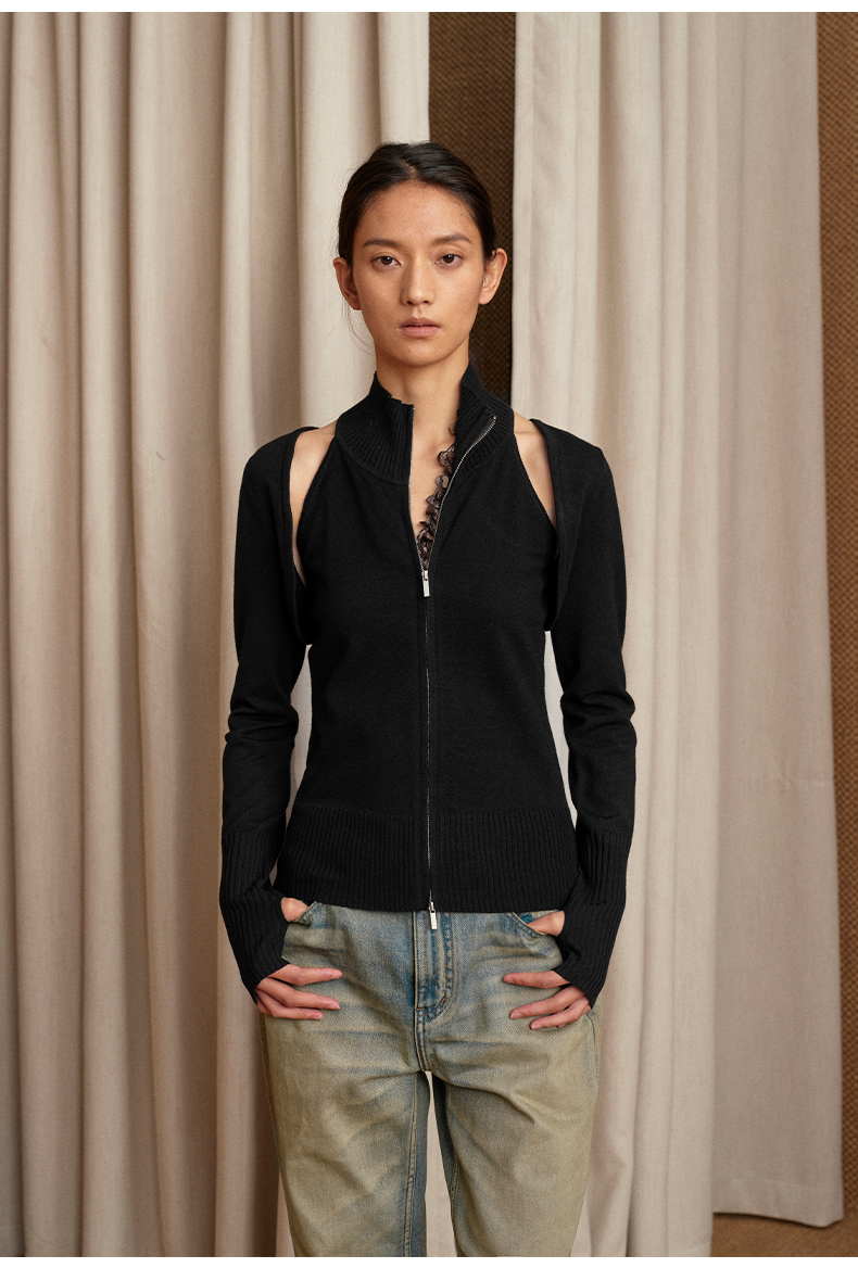 NUTH 多穿显瘦长袖针织披肩双头拉链背心两件套女