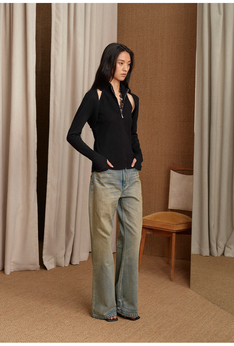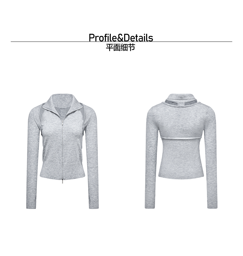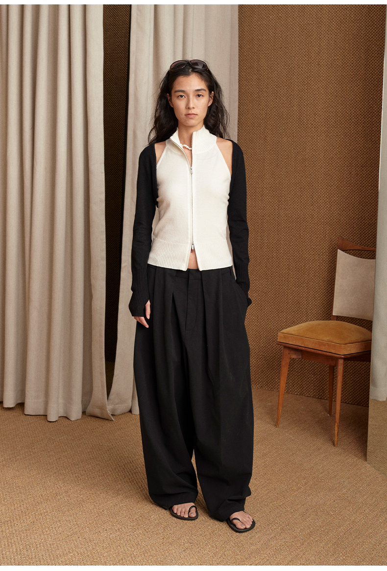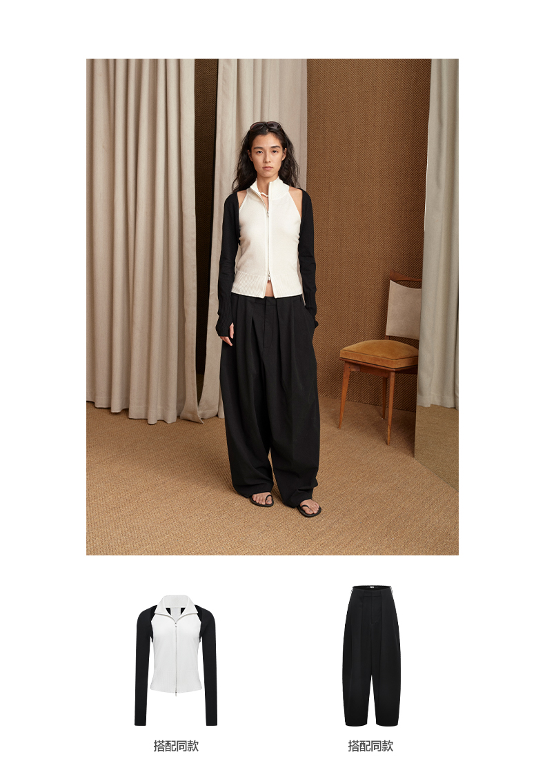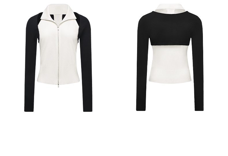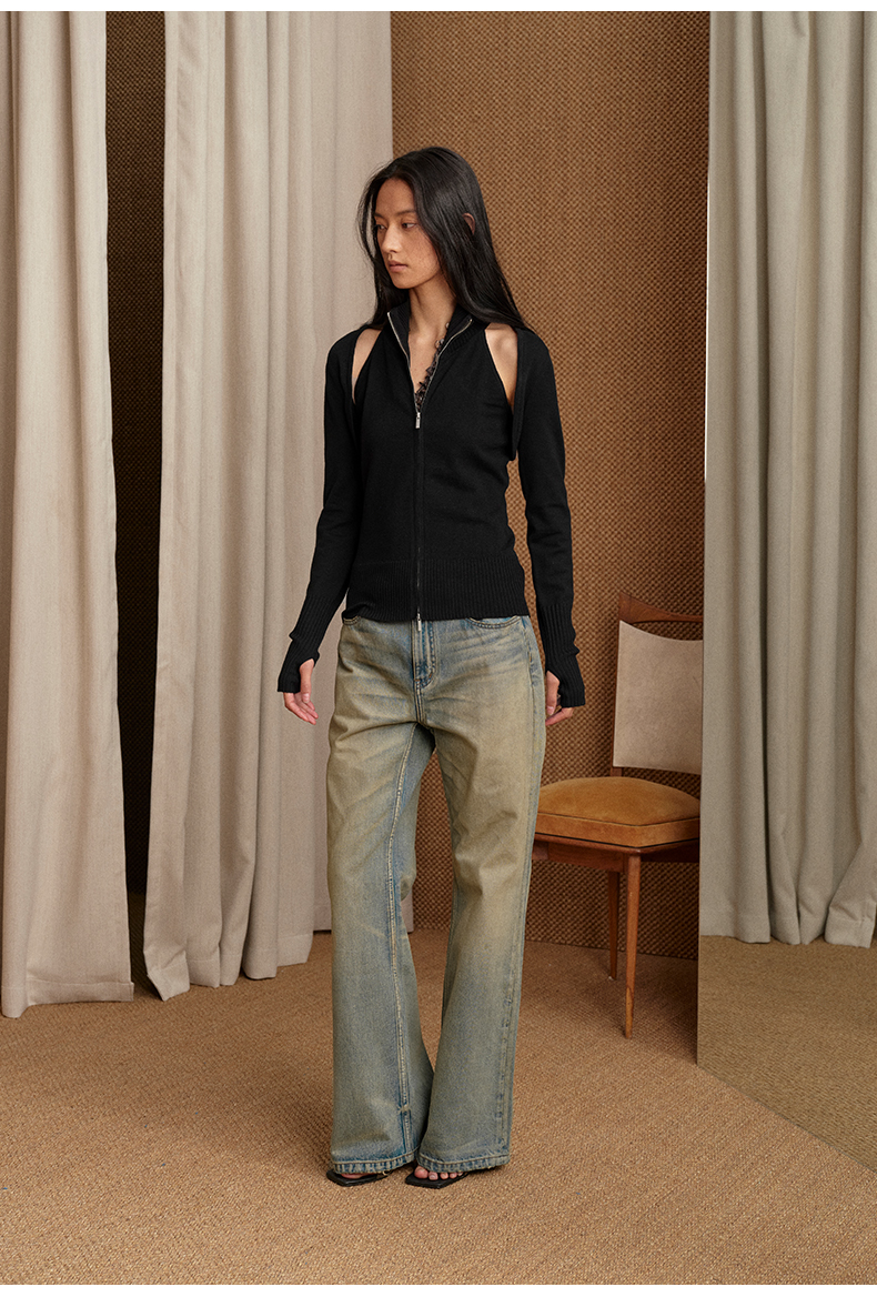 NUTH 多穿显瘦长袖针织披肩双头拉链背心两件套女