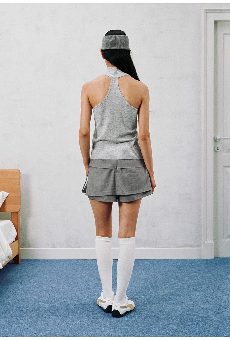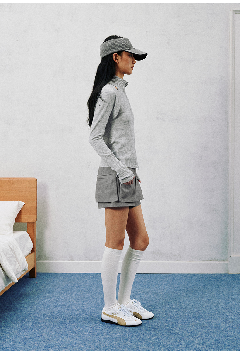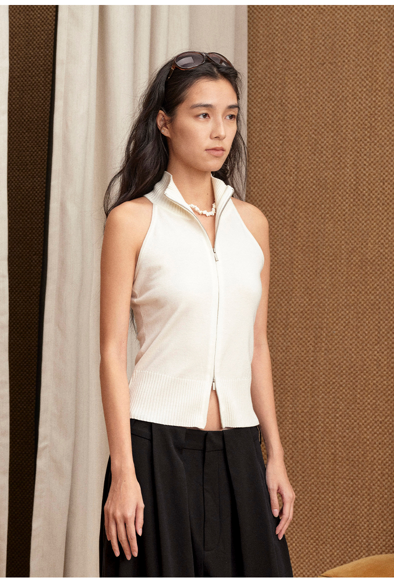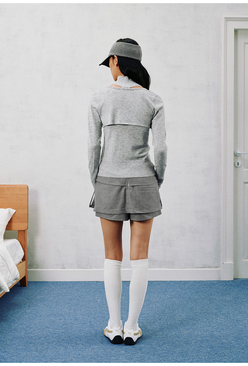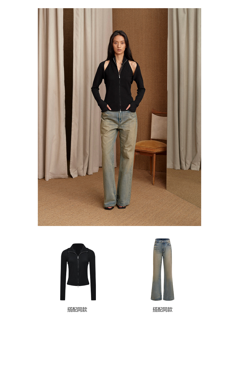 NUTH 多穿显瘦长袖针织披肩双头拉链背心两件套女