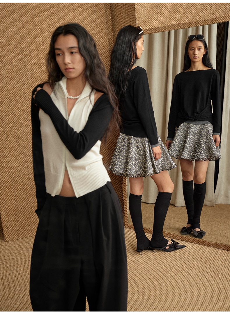 NUTH长袖针织衫女修身不对称简约百搭开衫上衣