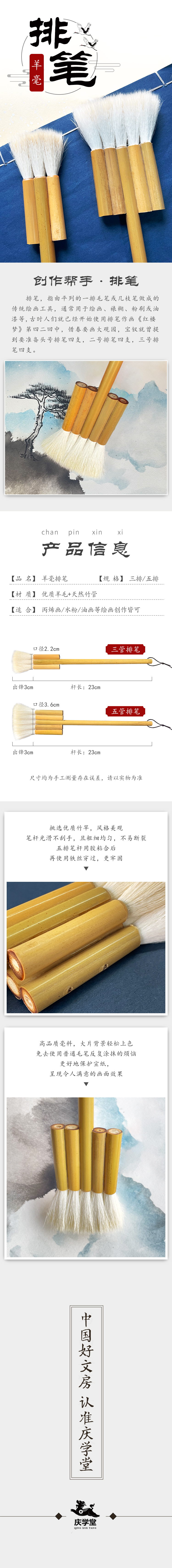 【庆学堂】羊毫排笔 三头排笔/五头排笔 渲染上色 专业级文房用品
