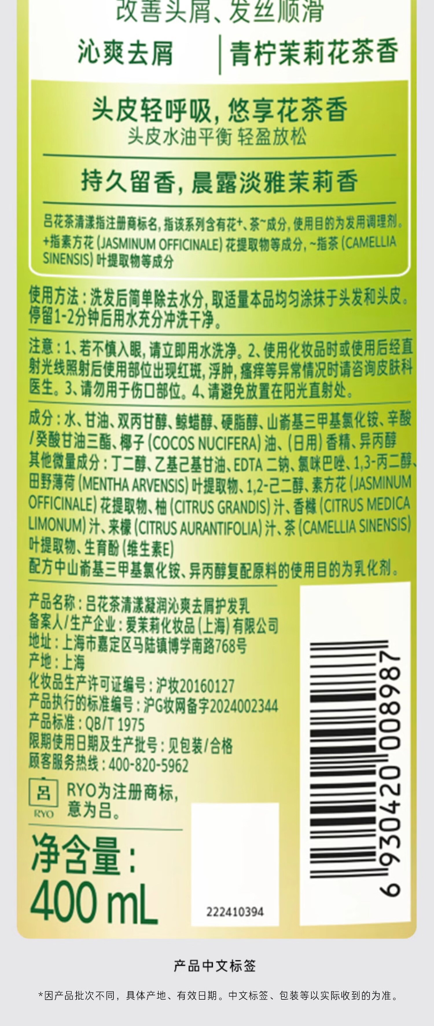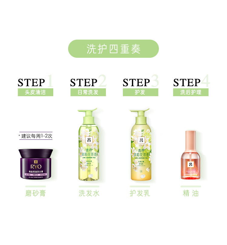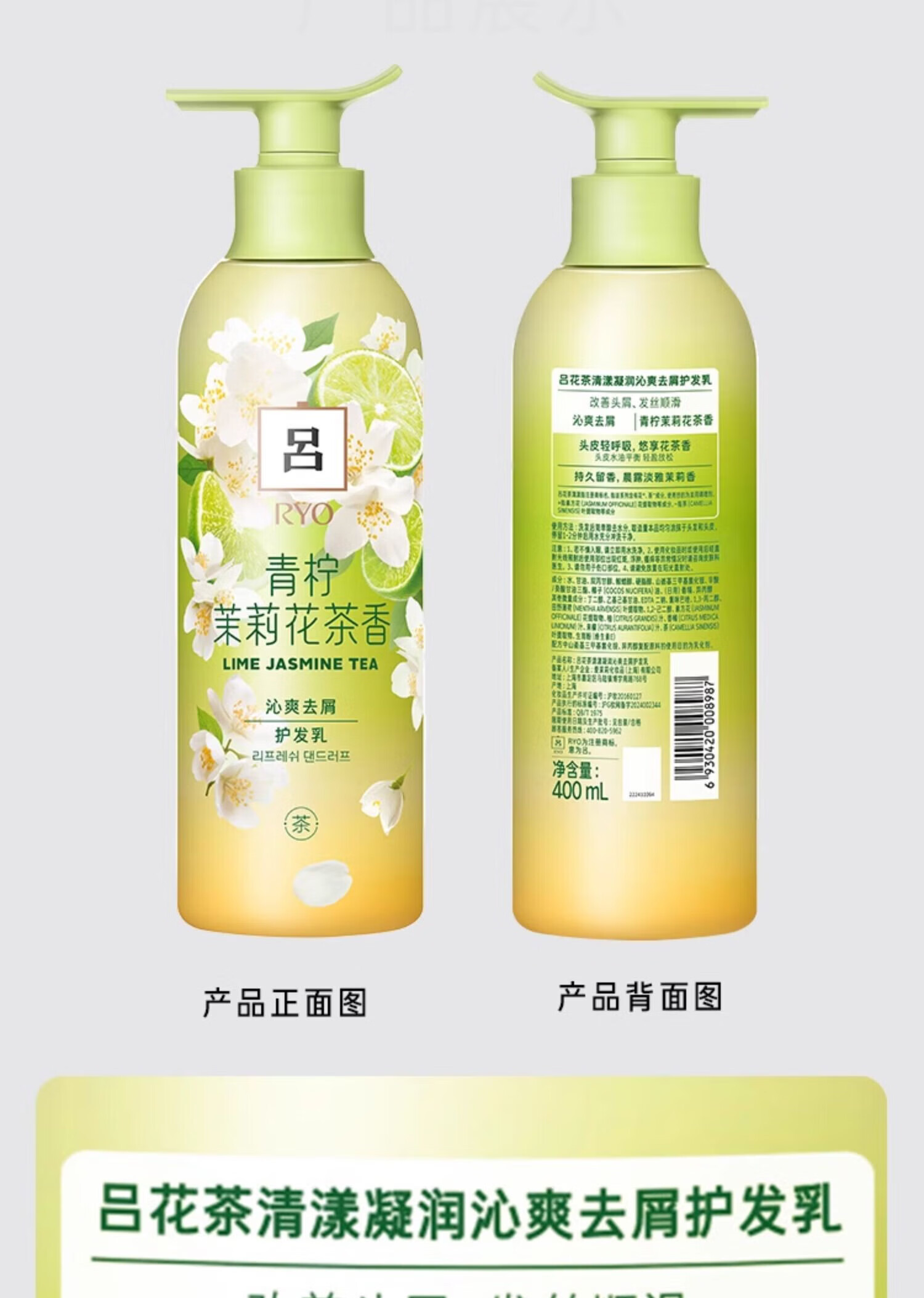Ryo吕 青柠茉莉保湿去屑持久留香洗发水护发素洗护套装 400ml*2瓶