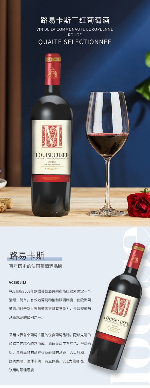 【6瓶装】法国进口路易卡斯干红葡萄酒 14%vol 750ml/瓶