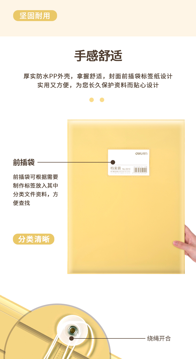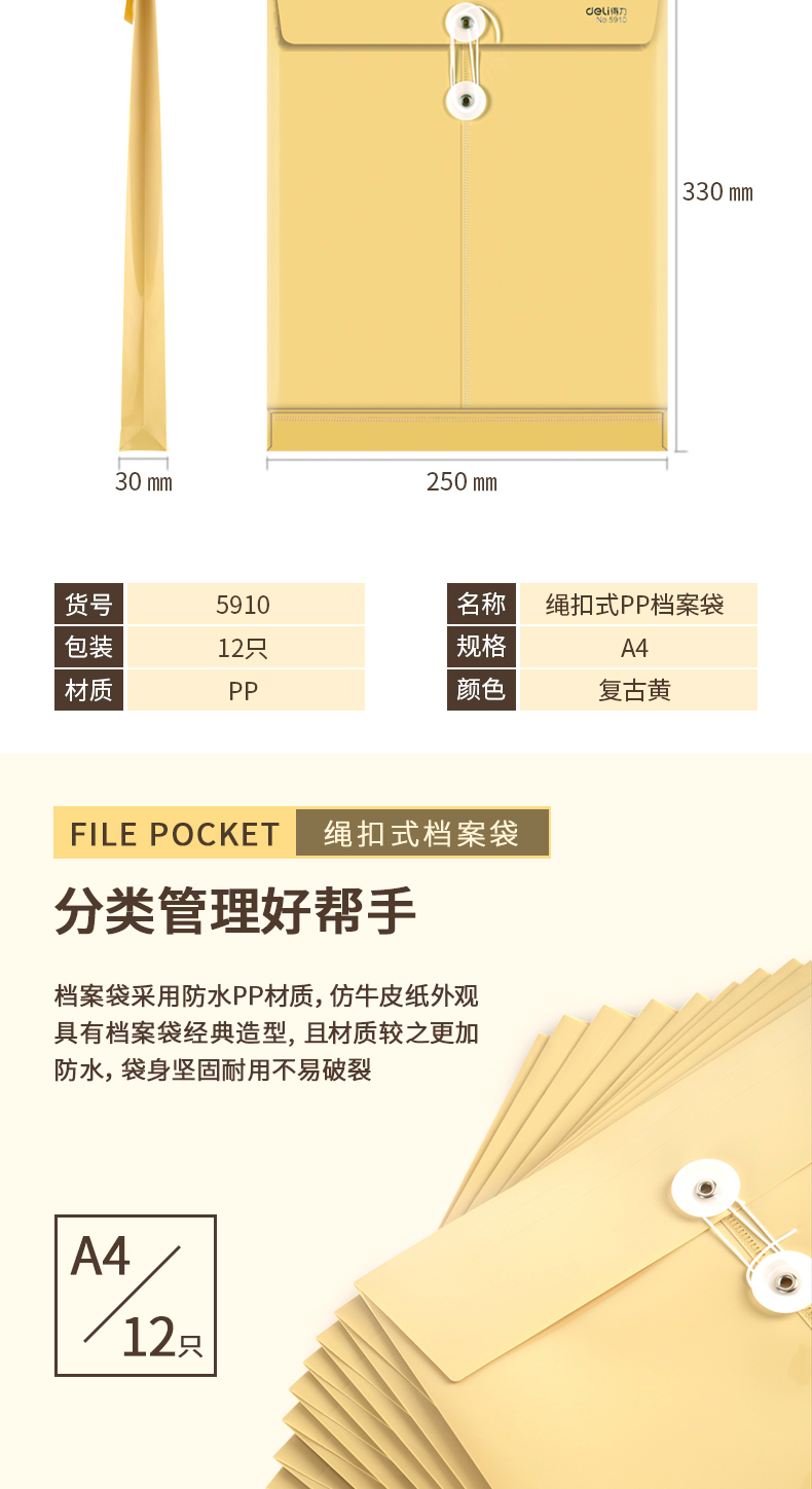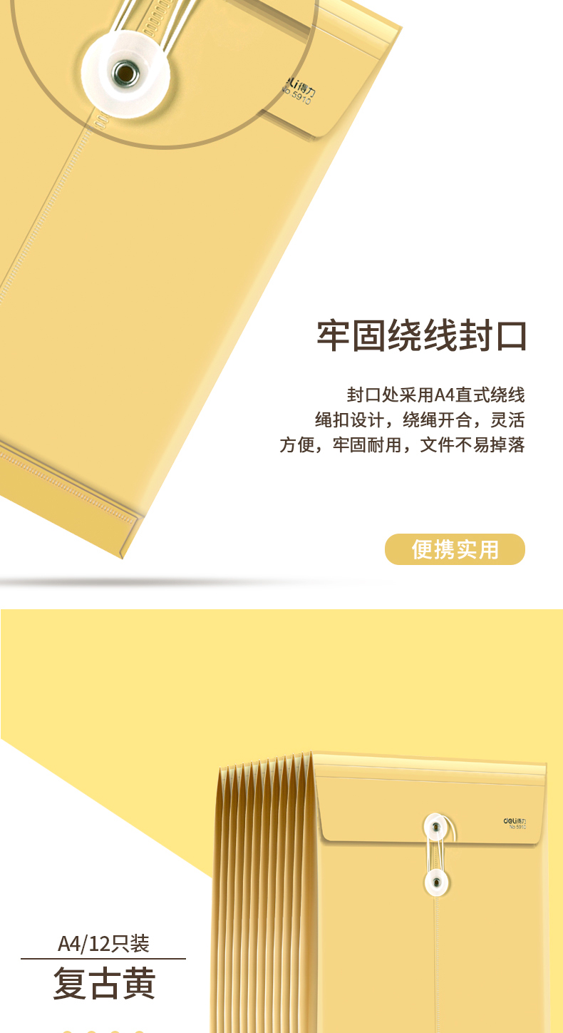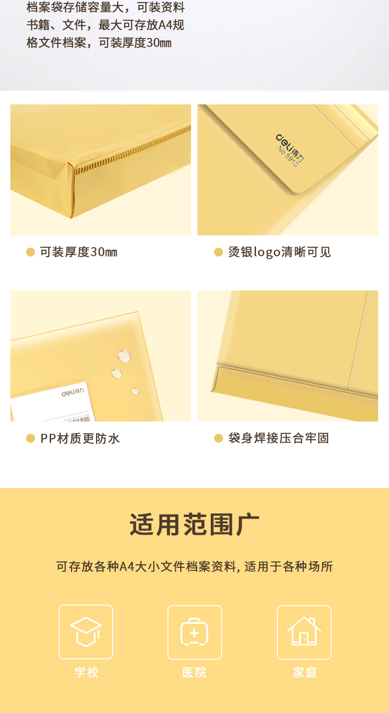 【仅供集采】得力5953牛皮纸档案袋A4纸质文件袋文件夹文档文件收纳40mm背宽不易变形加厚投标合同资料批发大容量300个装