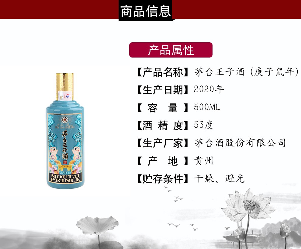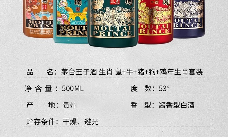 【推荐】茅台王子酒组合(鸡狗猪牛鼠)53度 500ML*5 瓶 组合装