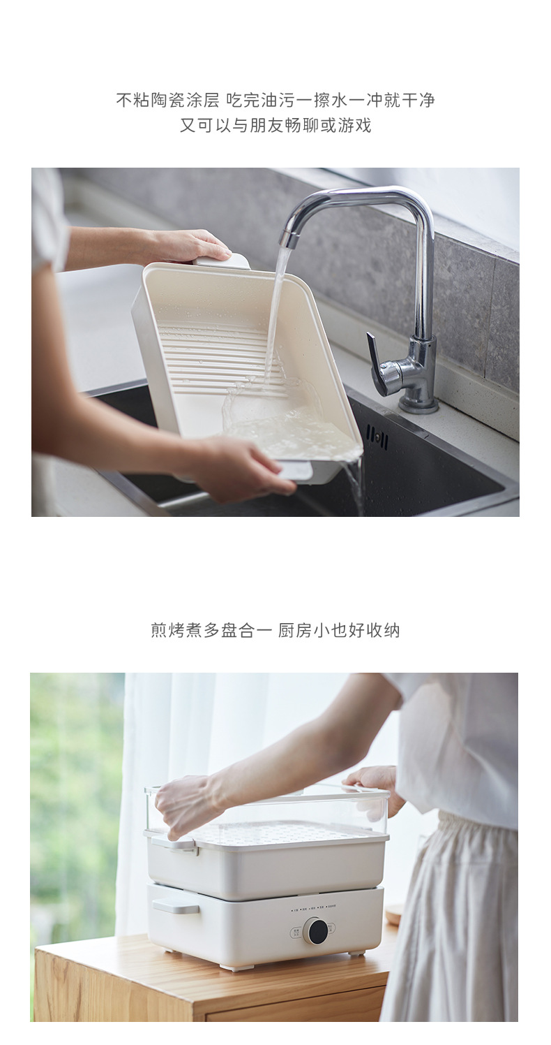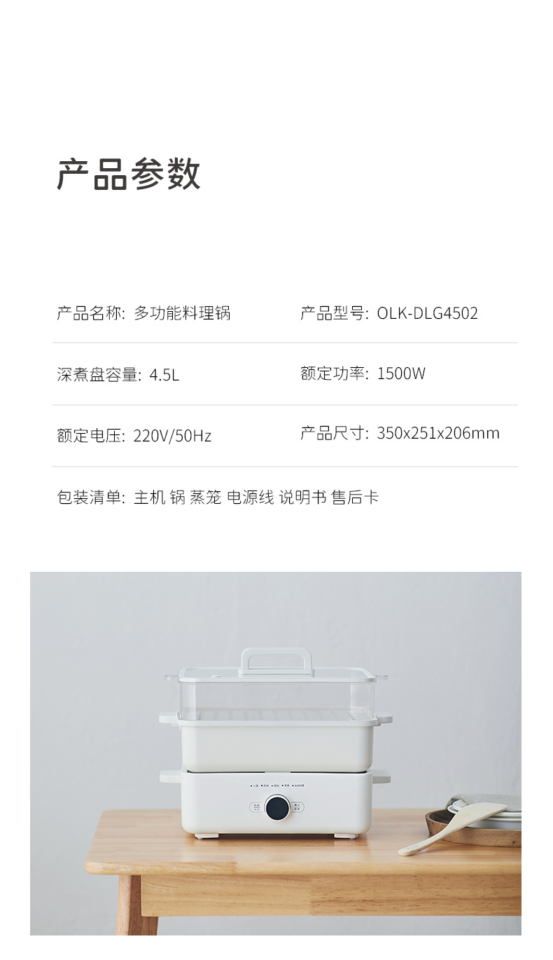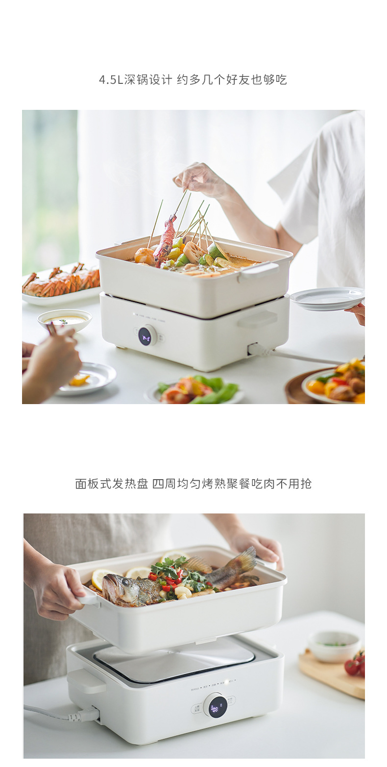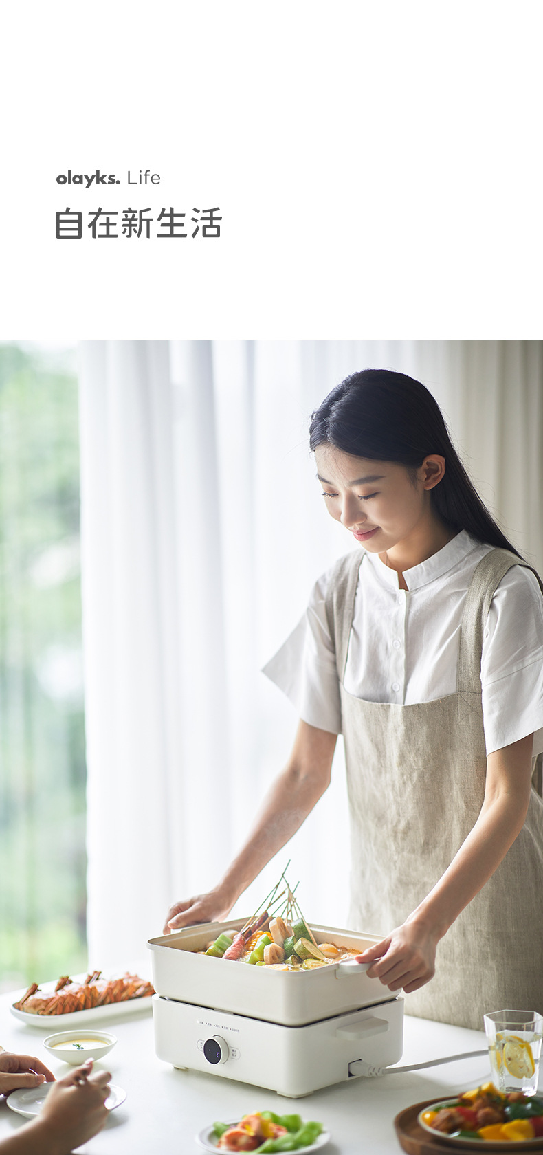 olayks欧莱克多功能料理锅家用烧烤肉火锅涮烤一体蒸煮煎炒电火锅 心选到家