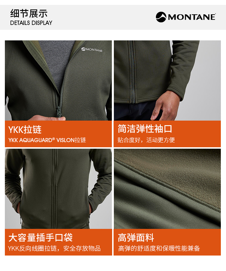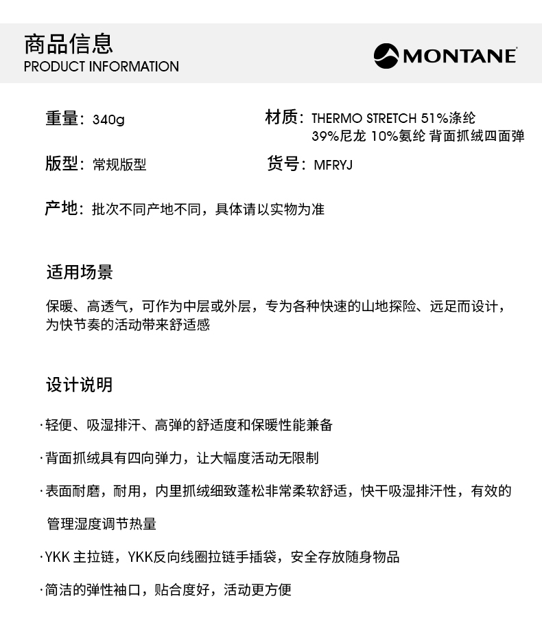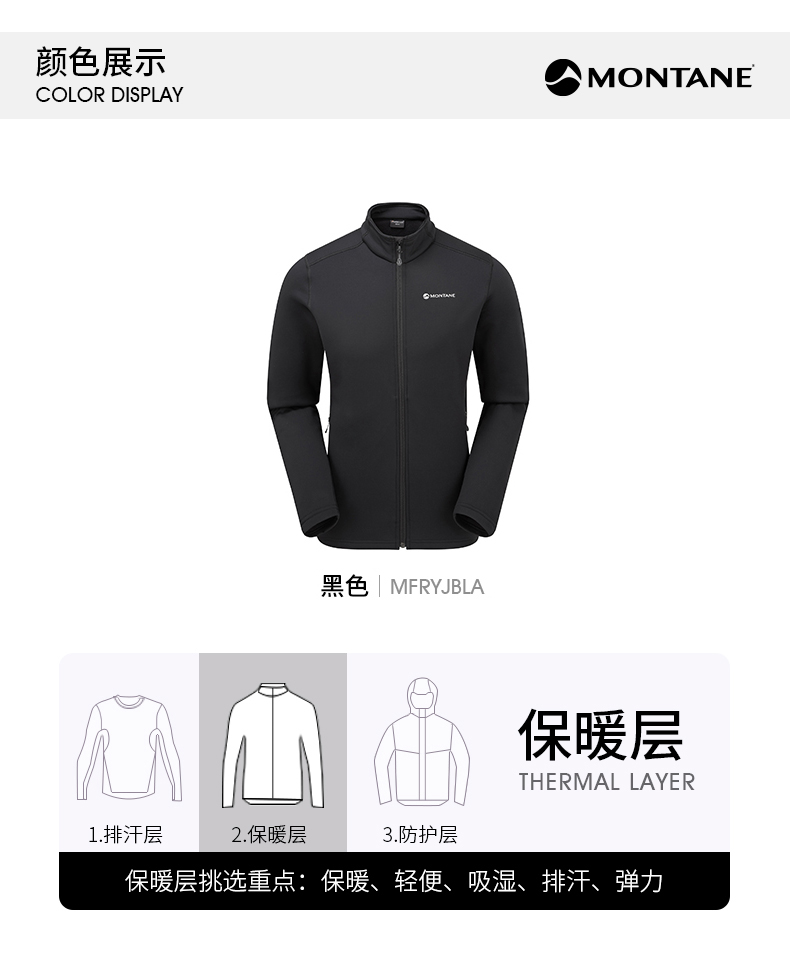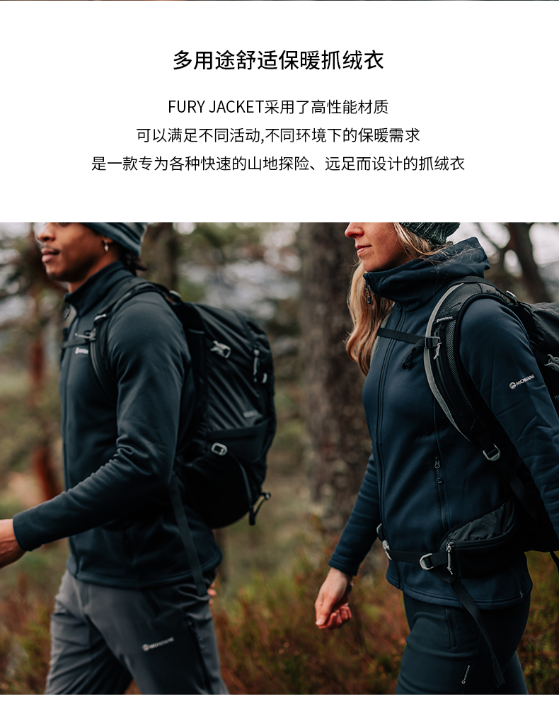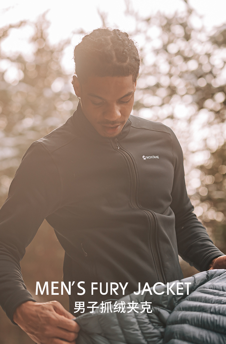 MONTANE 盟泰恩FURY抓绒衣男 轻便透气高弹外套 户外徒步舒适夹克四面弹