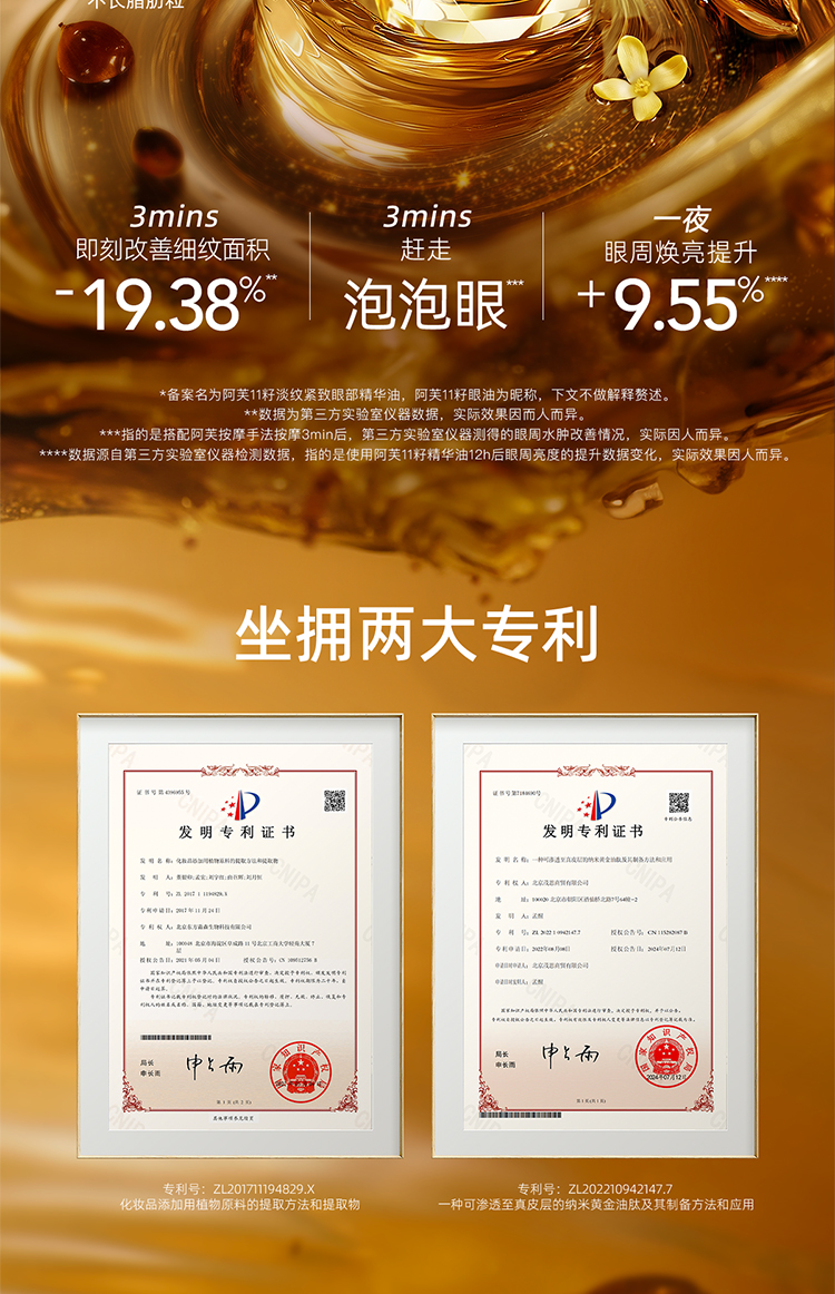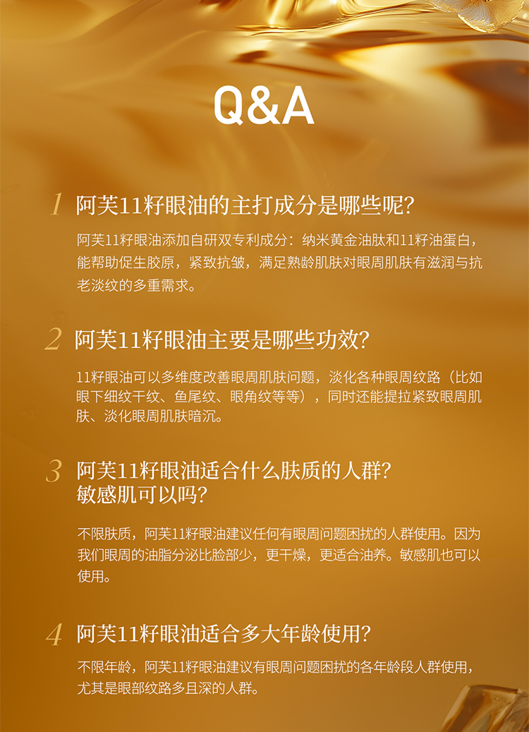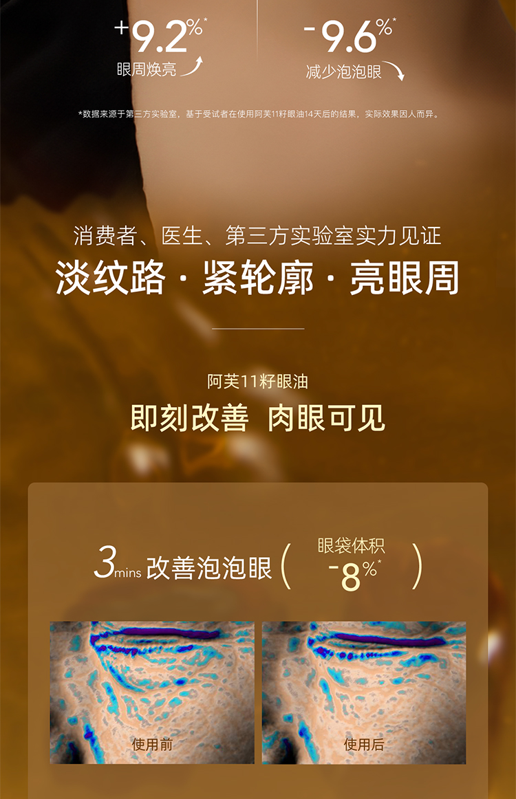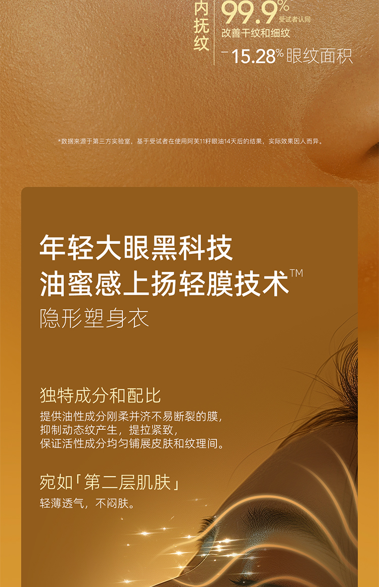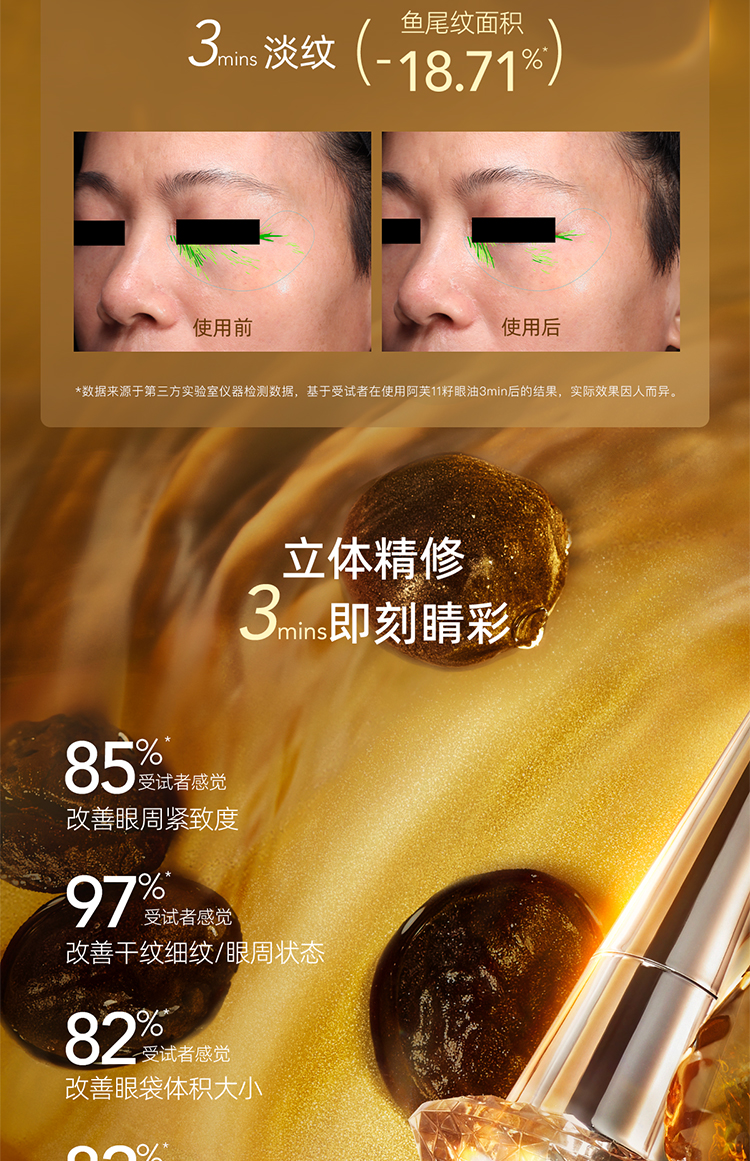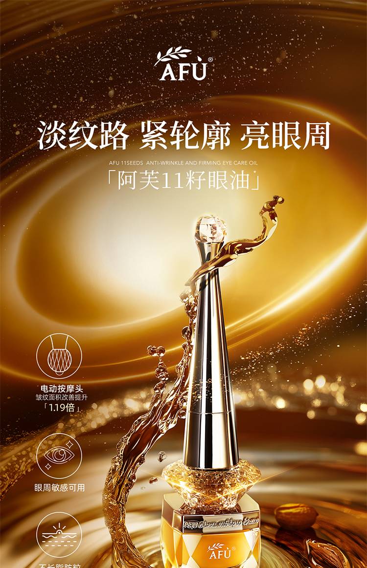 严选 | AFU阿芙11籽紧致淡纹眼部精华油 纳米黄金油肽 淡化眼周细纹