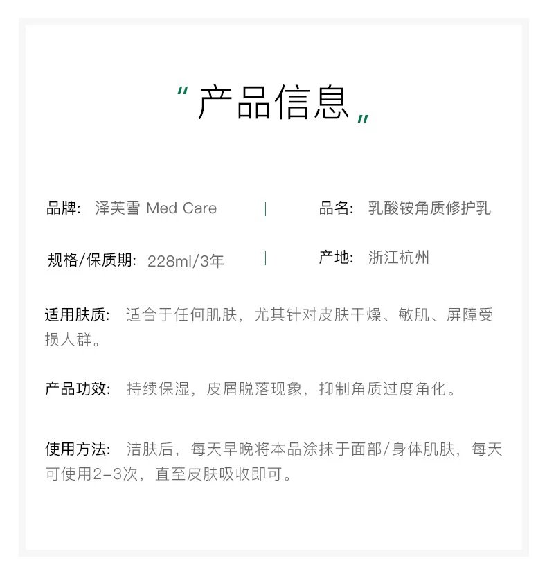 便宜好用大碗!医美护手霜身体乳泽芙雪228ml乳酸铵角质修护乳冬天清爽身体乳保湿补水滋润润肤乳