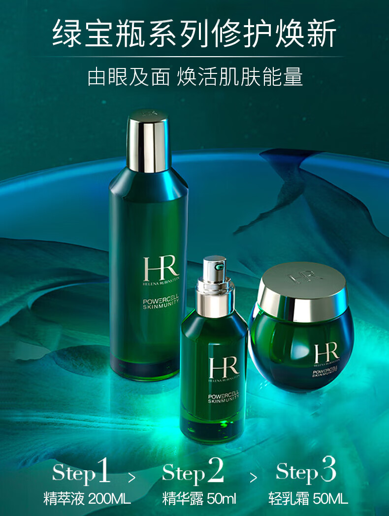 【保税仓】赫莲娜/HR绿宝瓶修护基础保养套盒:精萃液200ml+精华50ml+轻乳霜50ml