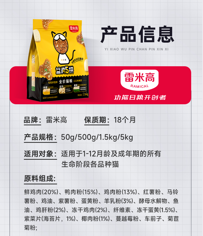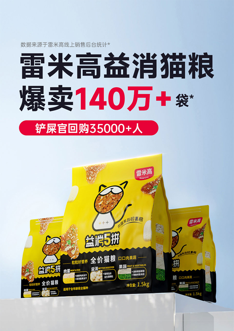 【雷米高】益消5拼冻干猫粮1.5kg全价全阶段通用主粮囤货装