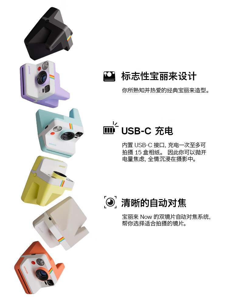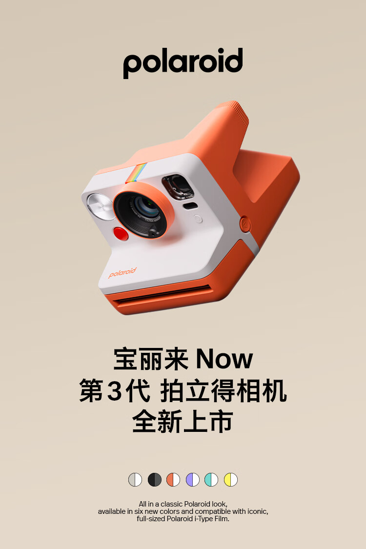 宝丽来(Polaroid)Now 第3代 相机拍立得户外相机 经典基础入门款复古焕新色彩升级 【官方标配 无相纸】