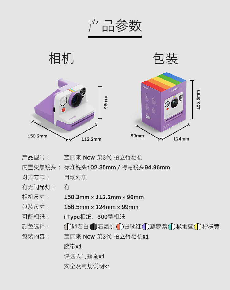 温馨提示:此产品不含相纸,需另外单独购买,适用600型、I-Type系列相纸