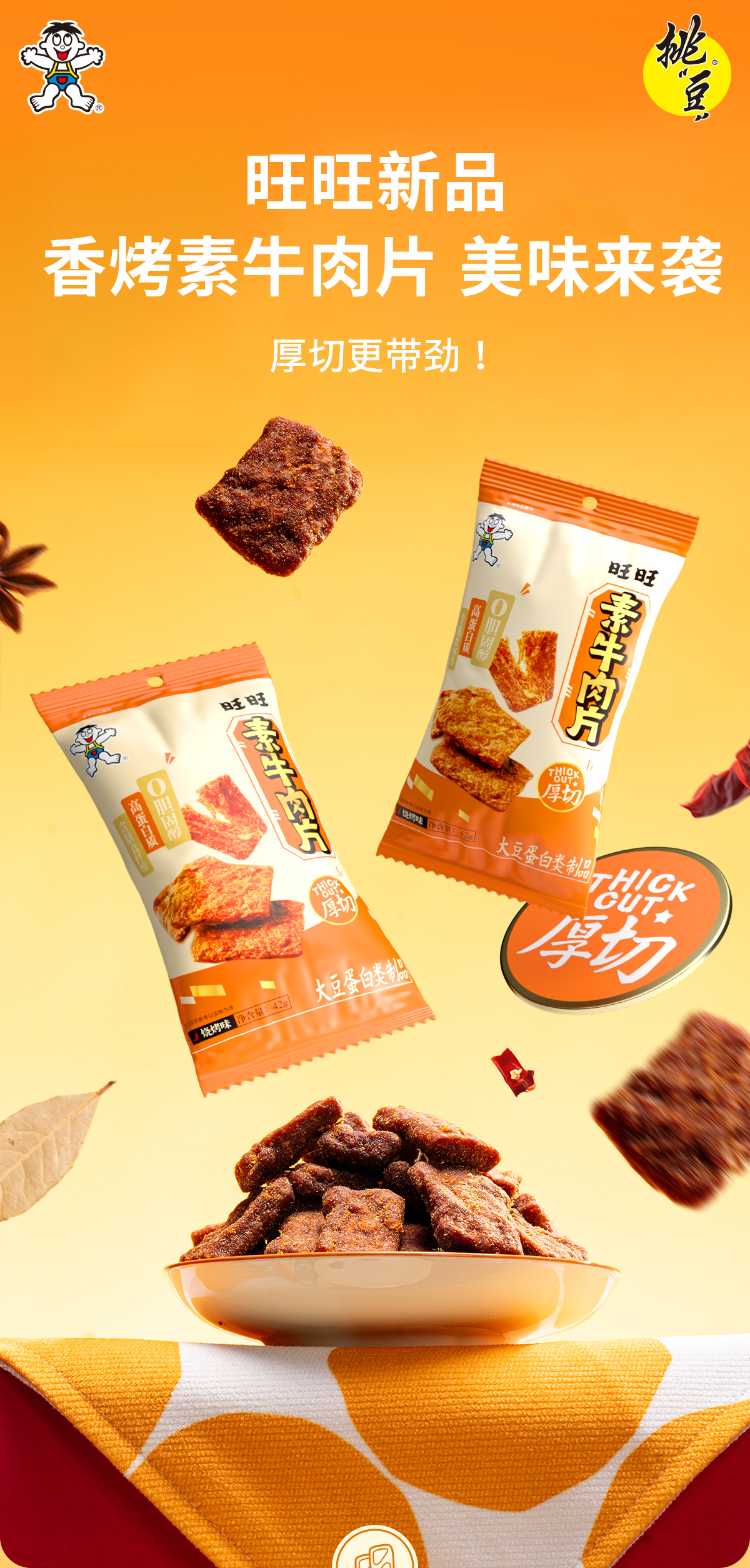 旺旺 旺旺素牛肉片 厚切弹牙嚼劲富含大豆蛋白 烧烤味42g