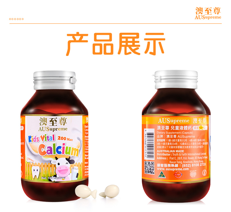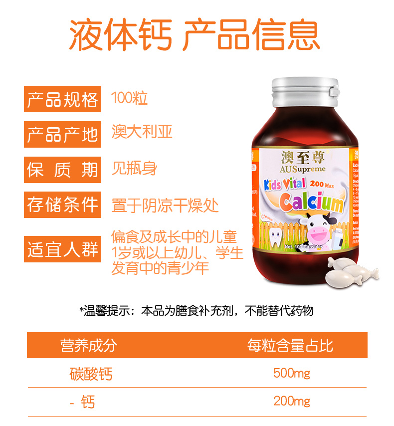 澳至尊儿童液体钙胶囊100粒 有效期2027-06-19