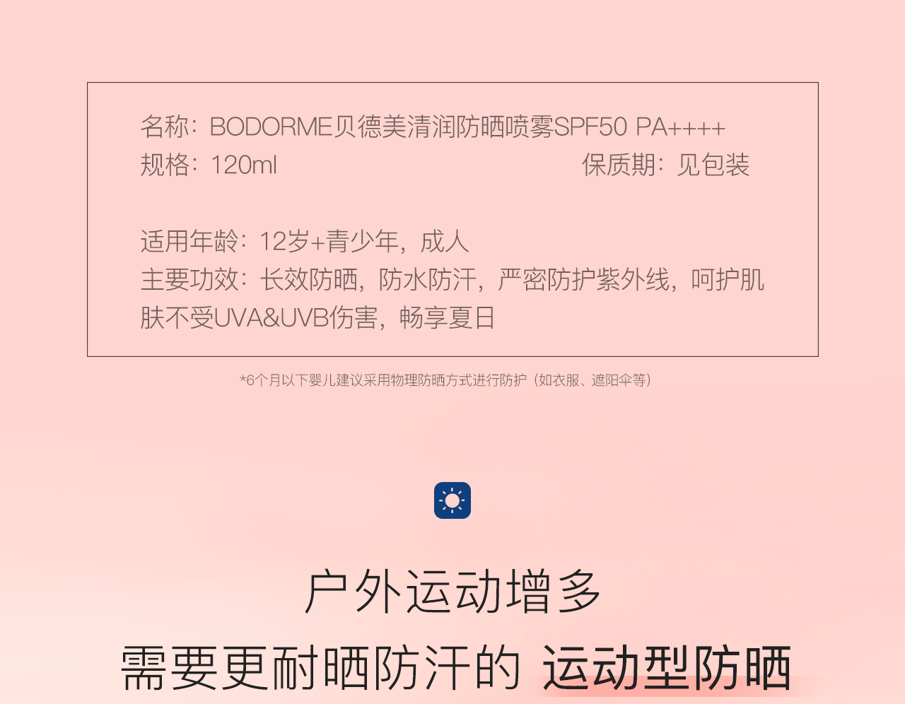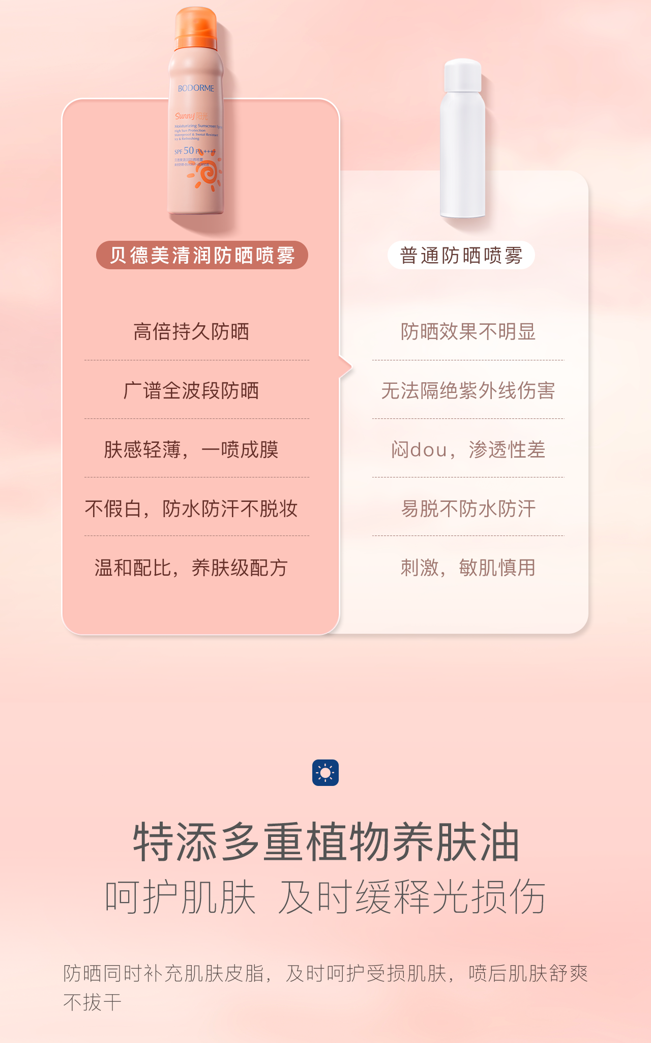 【贝德美】青少年防晒喷雾轻蒲细腻12岁+学 生防晒箱喷雾 SPF50/PA++++