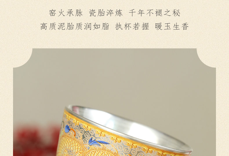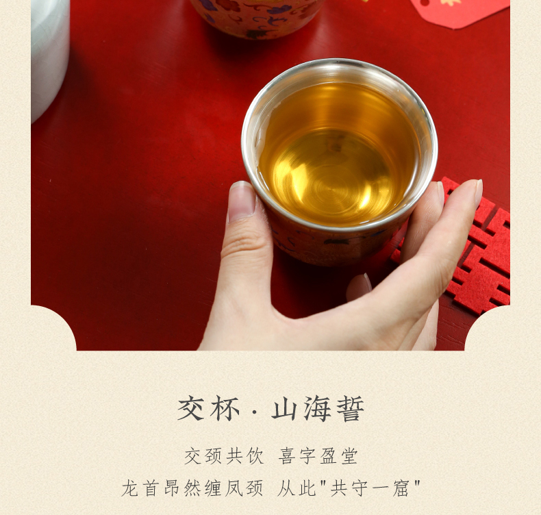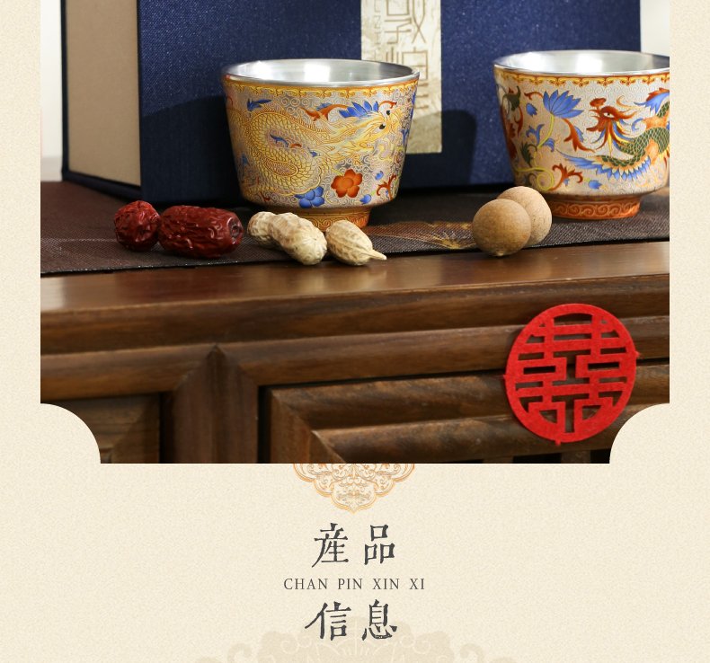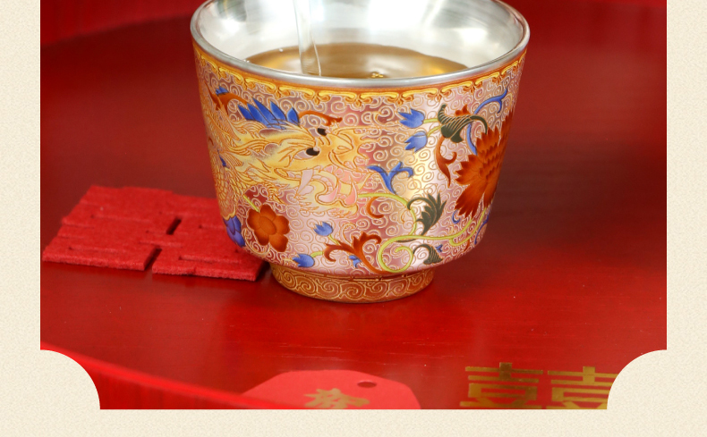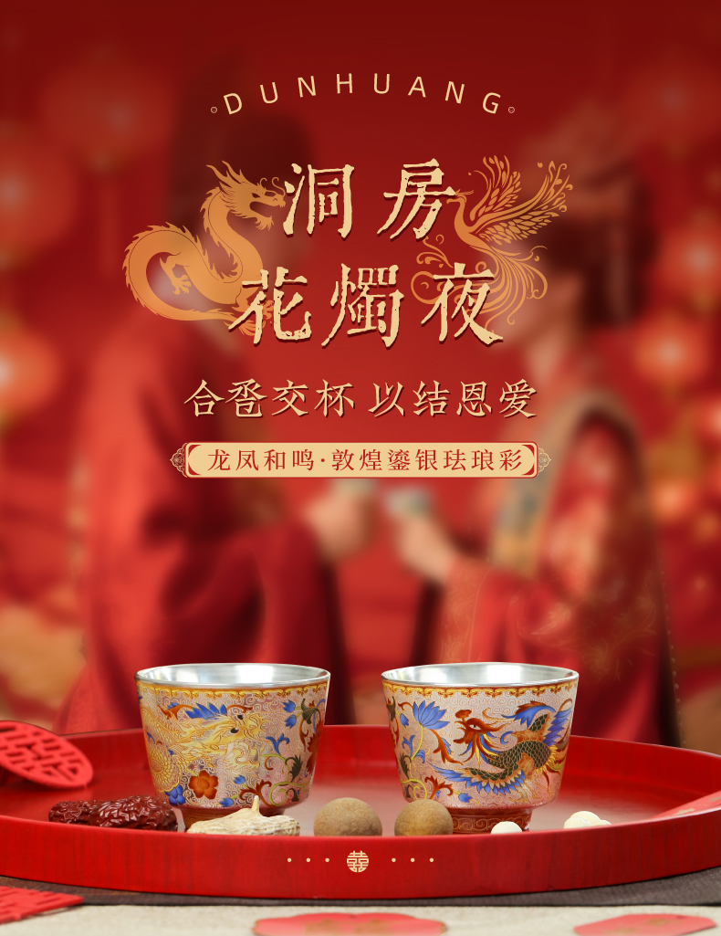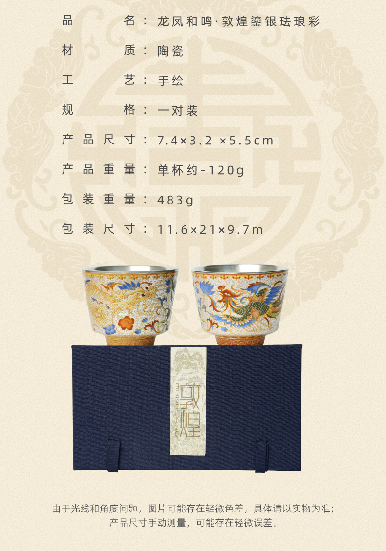 敦煌研究院【 龙凤和鸣鎏银珐琅彩对杯套装】 结婚礼物敬酒茶杯送新人